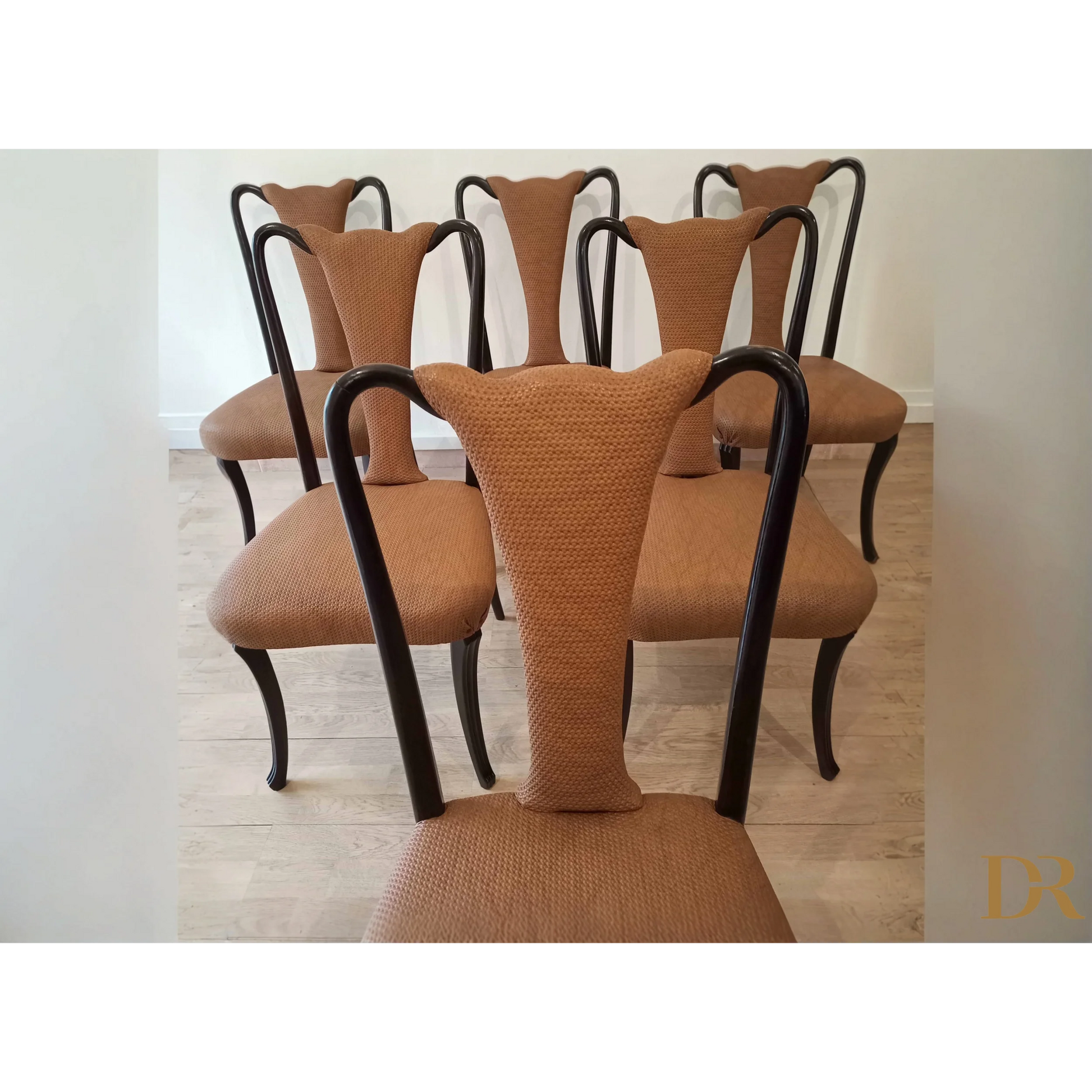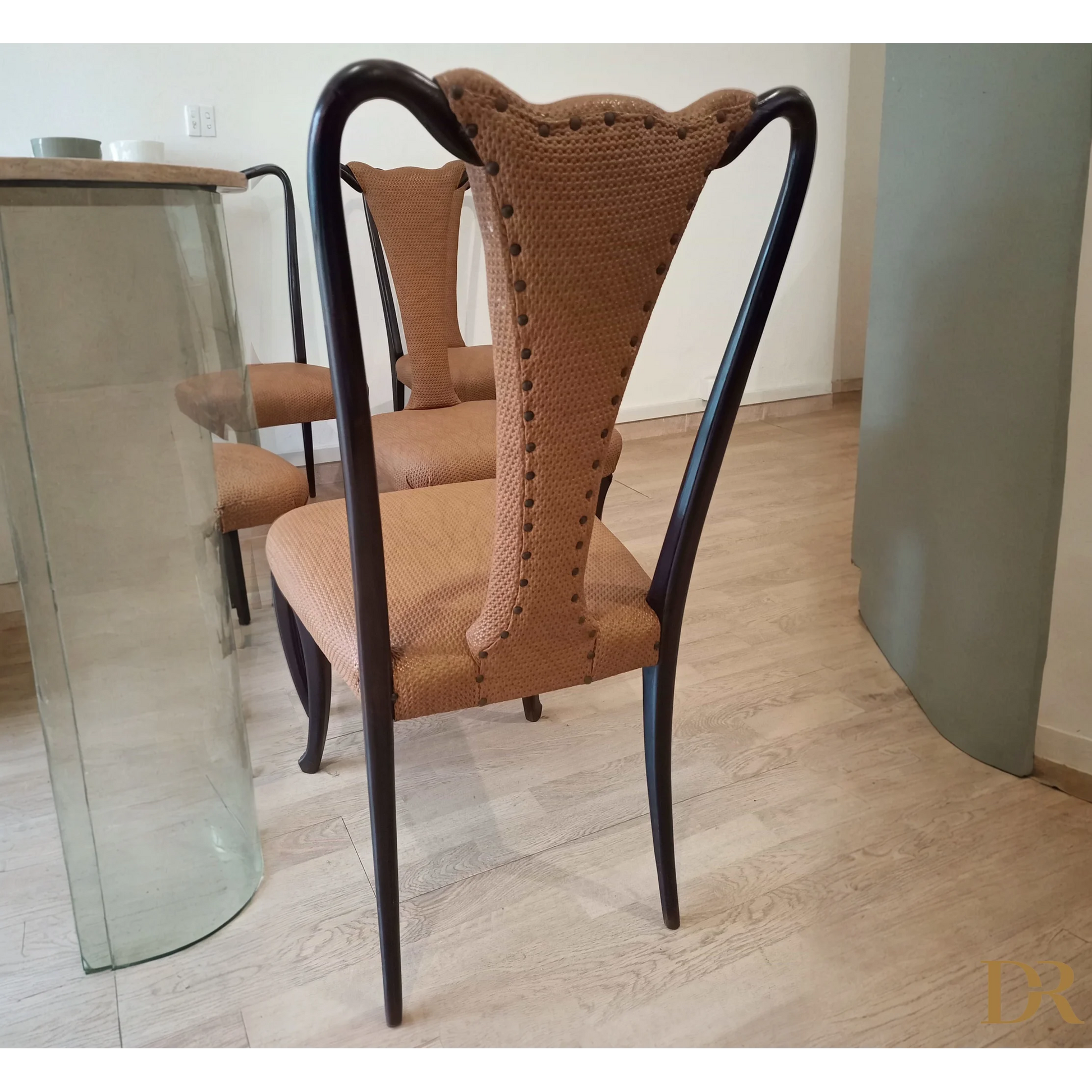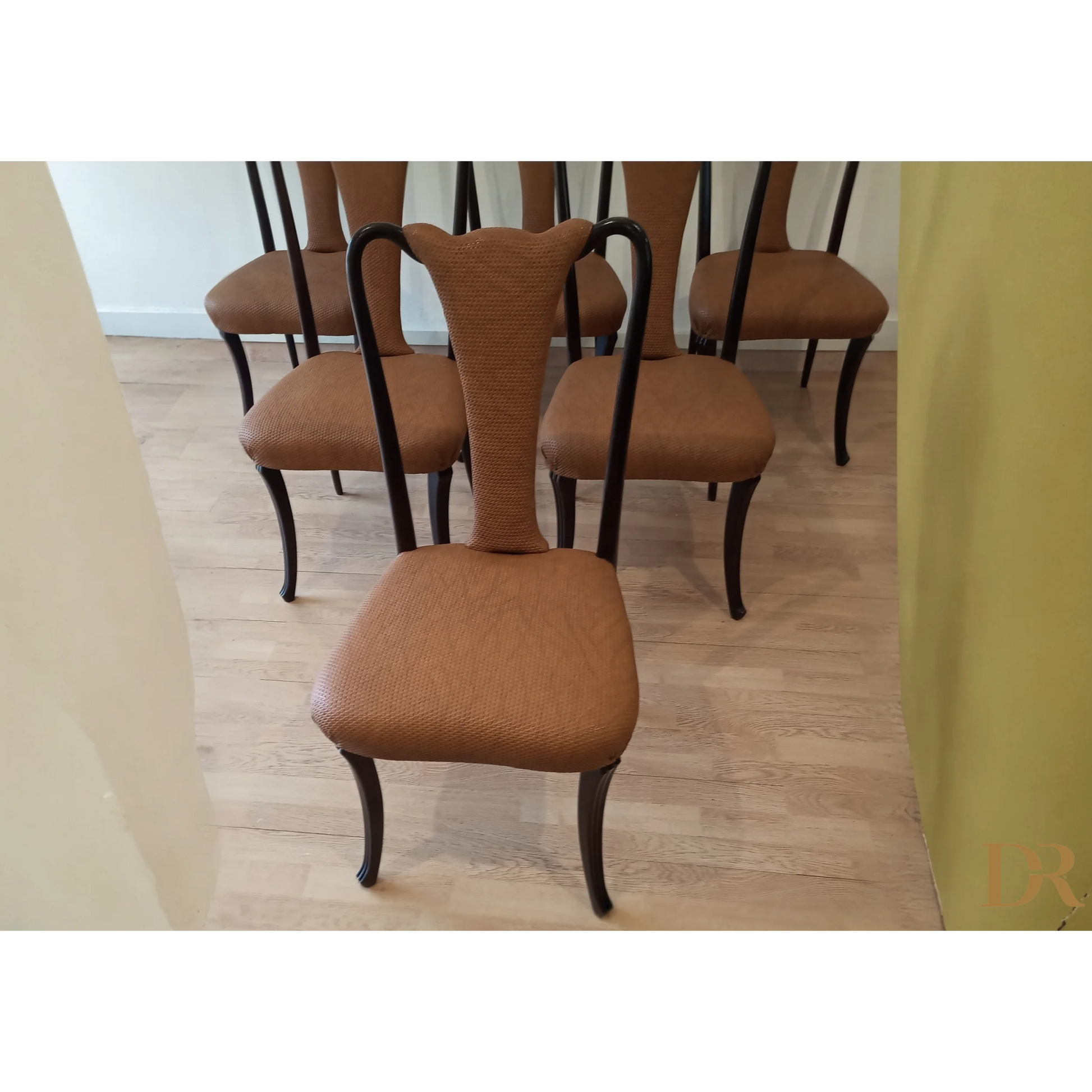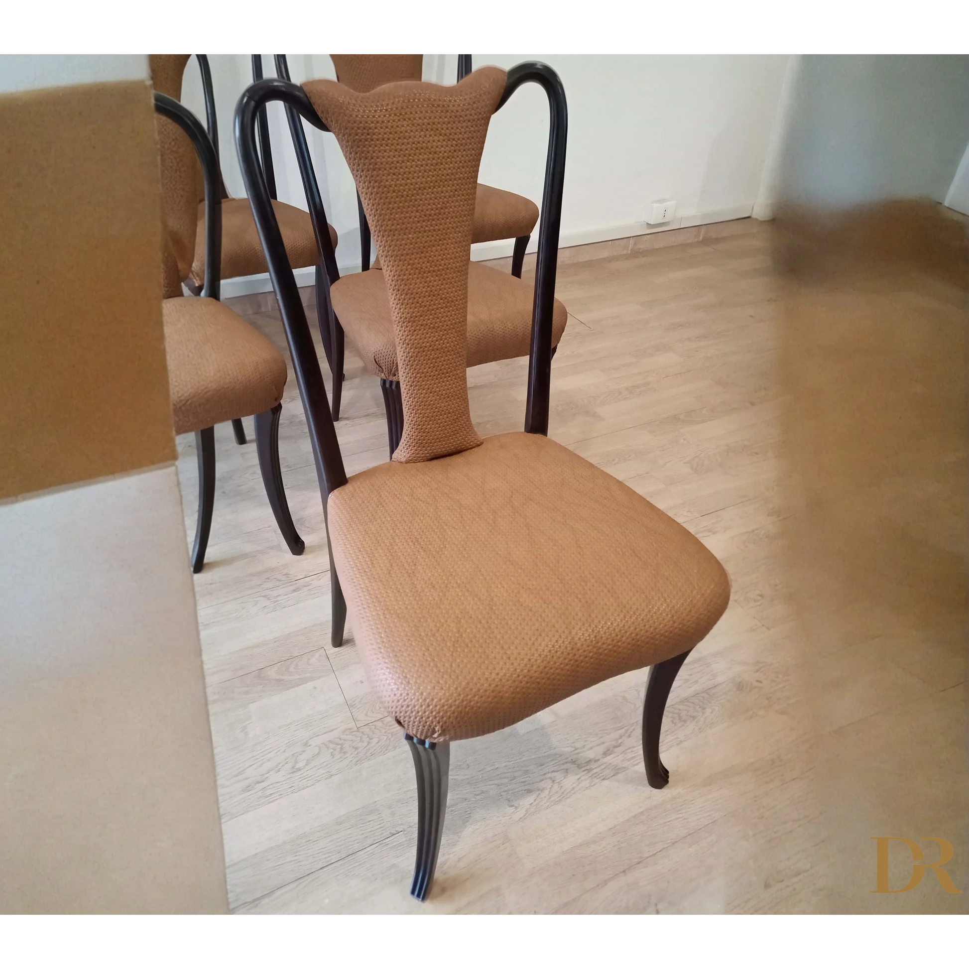 Realizzate nella rinomata Brianza, una regione del Nord Italia celebre per la sua tradizione artigianale nella produzione di mobili, queste sedie risalgono al 1950. Seguono uno stile classico, reinterpretando con gusto un modello molto in voga all'inizio del secolo scorso e conferendo al contempo un tocco moderno e attuale. Queste sedie pranzo rappresentano un equilibrio sublime tra eleganza e funzionalità.