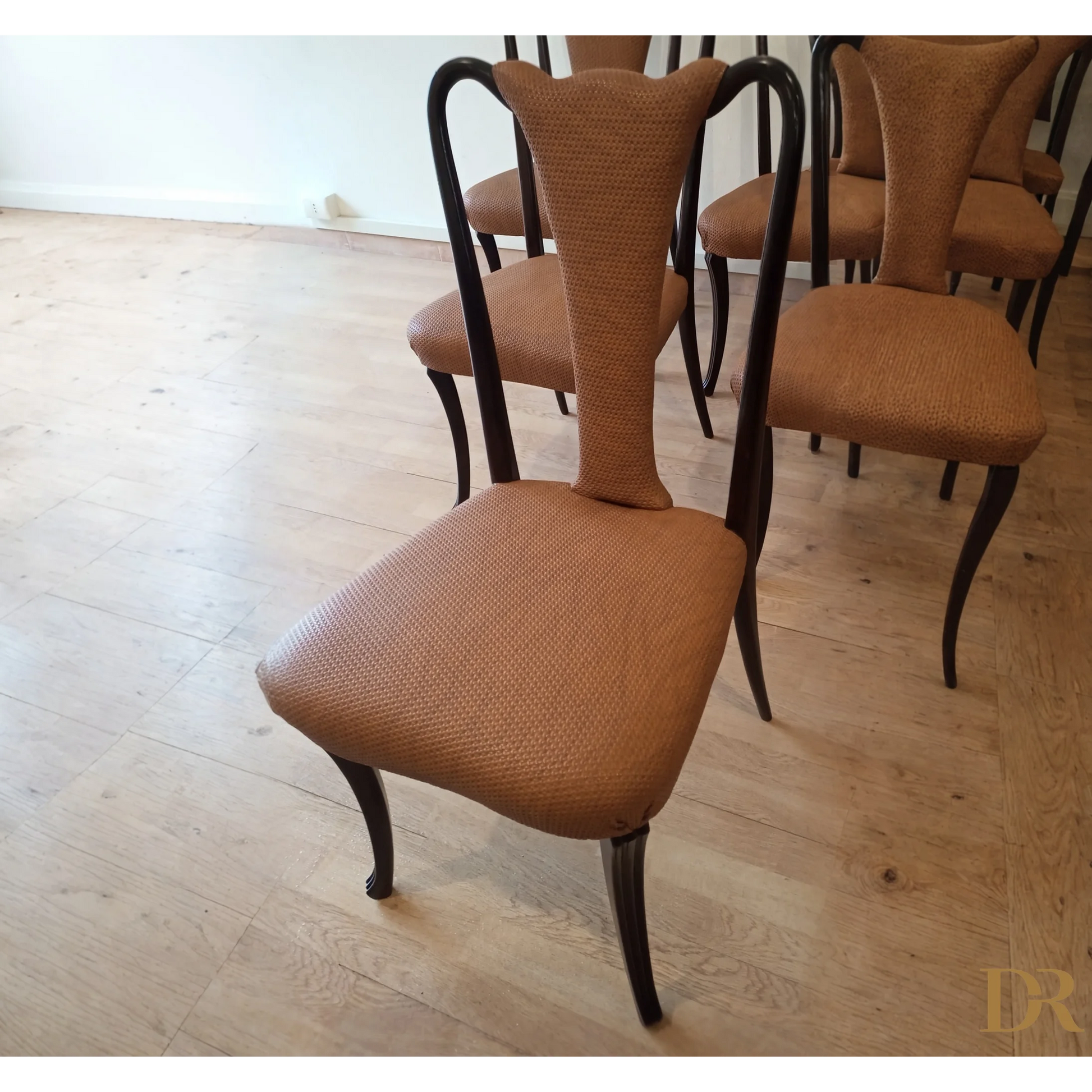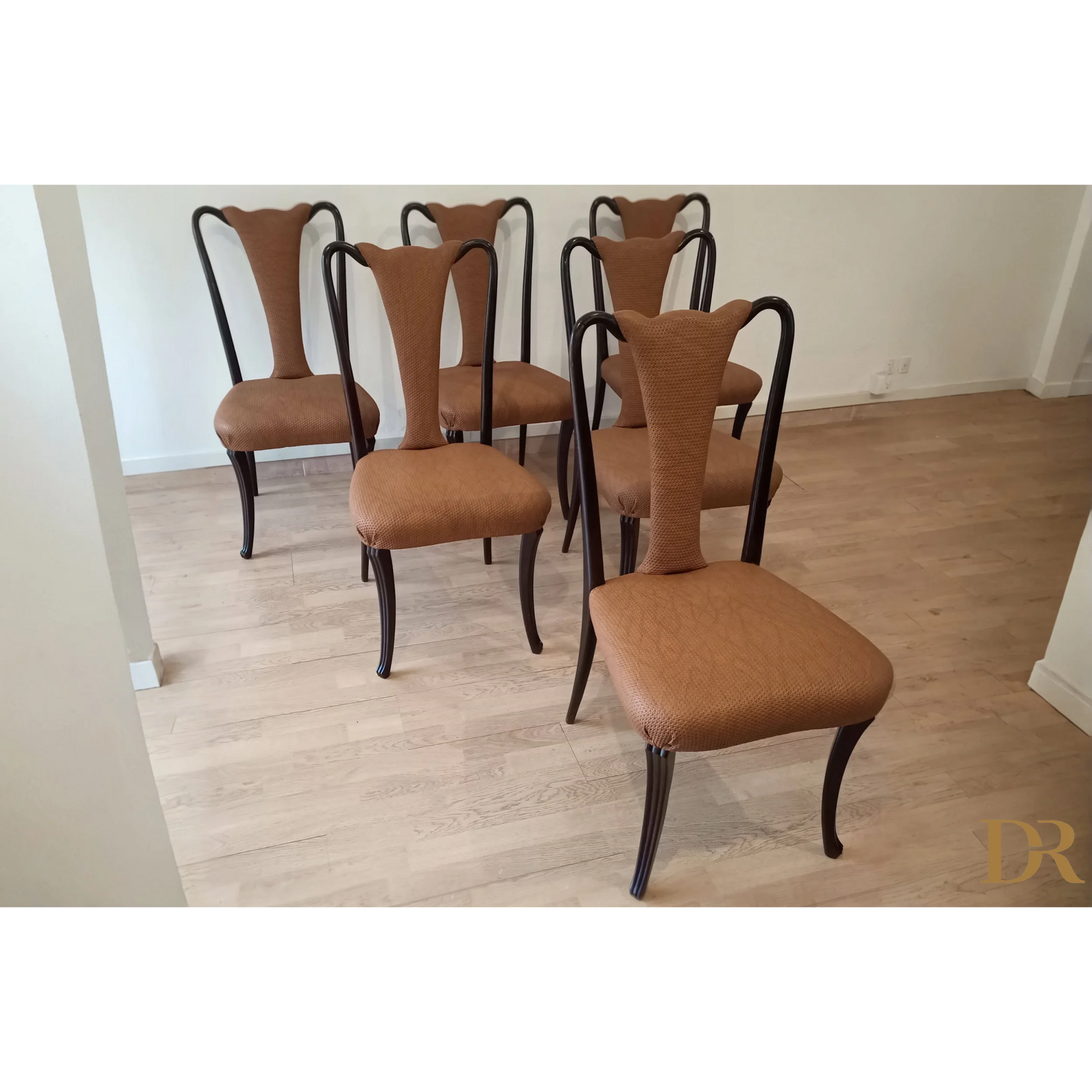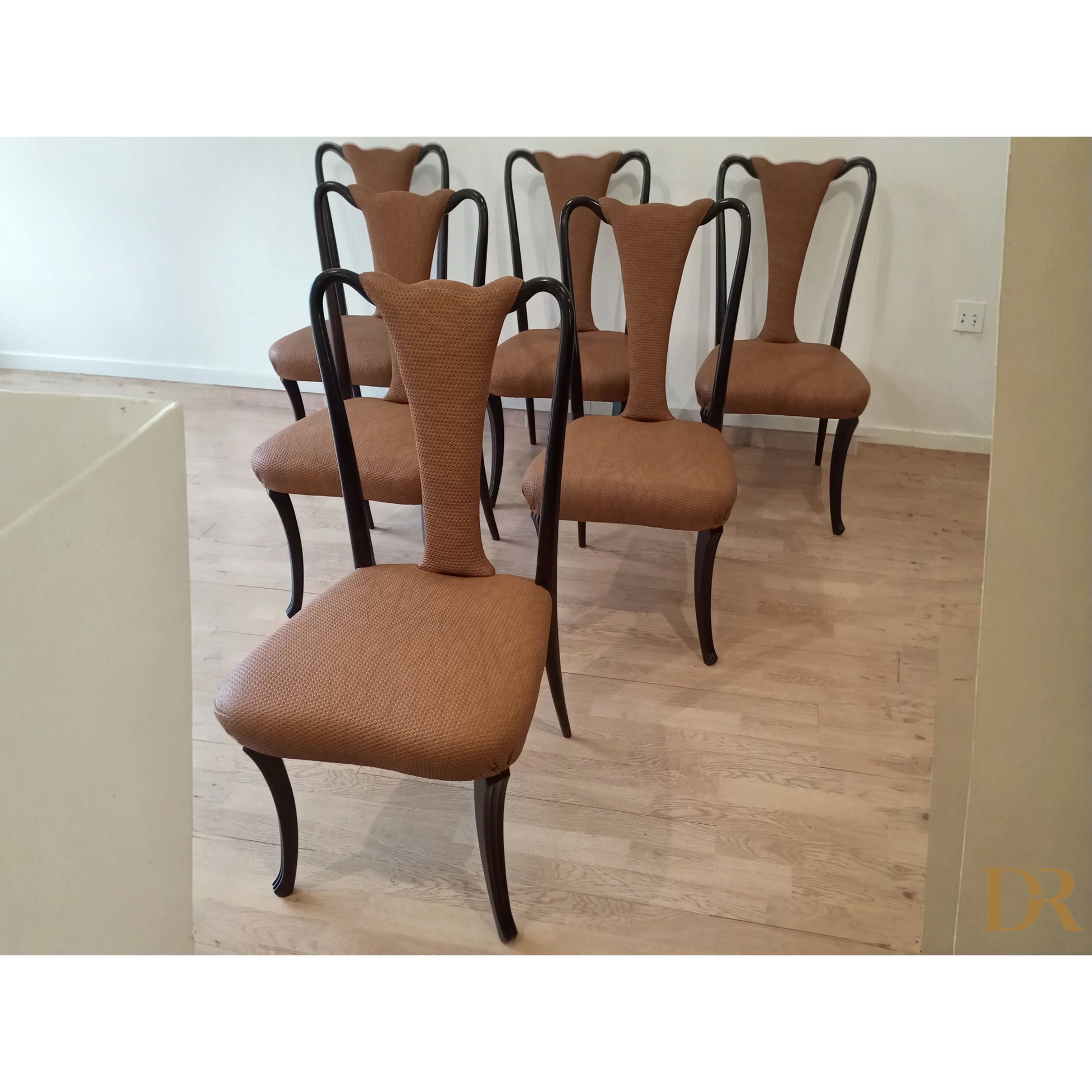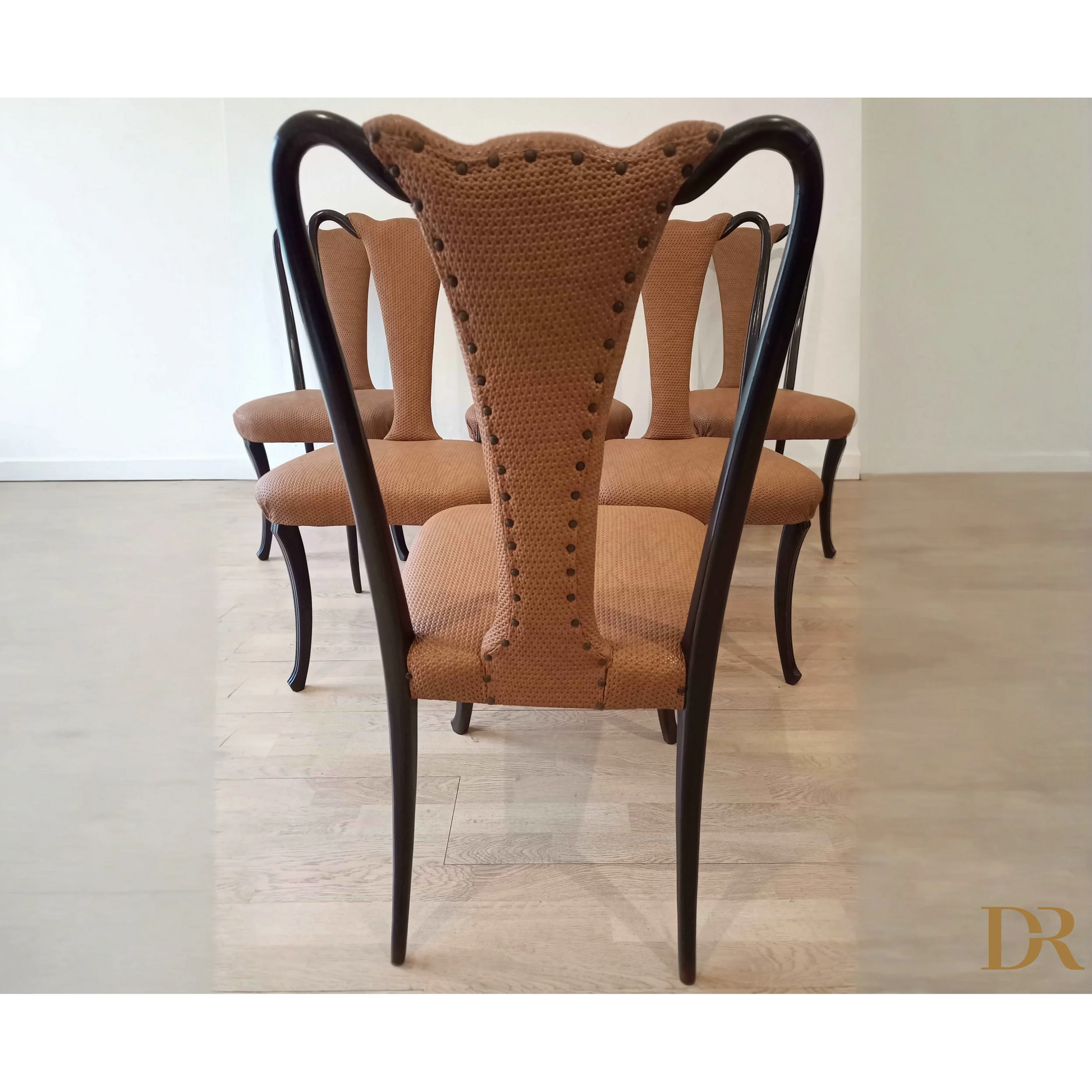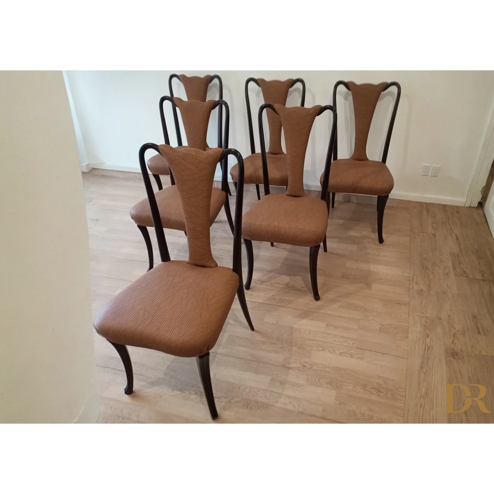 Realizzate nella rinomata Brianza, una regione del Nord Italia celebre per la sua tradizione artigianale nella produzione di mobili, queste sedie risalgono al 1950. Seguono uno stile classico, reinterpretando con gusto un modello molto in voga all'inizio del secolo scorso e conferendo al contempo un tocco moderno e attuale. Queste sedie pranzo rappresentano un equilibrio sublime tra eleganza e funzionalità.