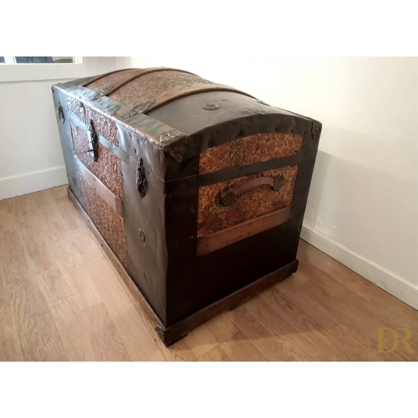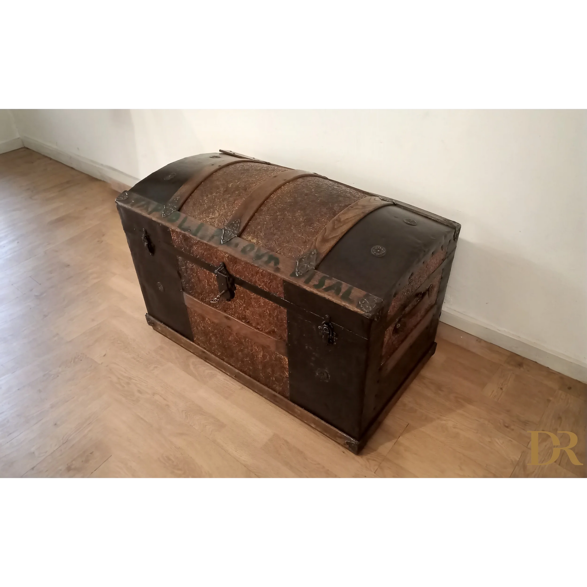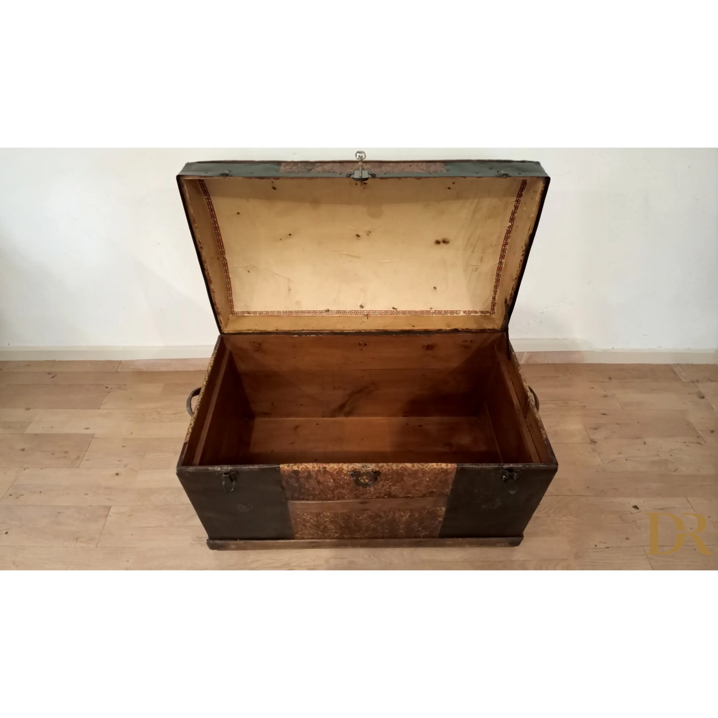 Antico baule bombato epoca 800 forziere legno e metallo. Restaurato