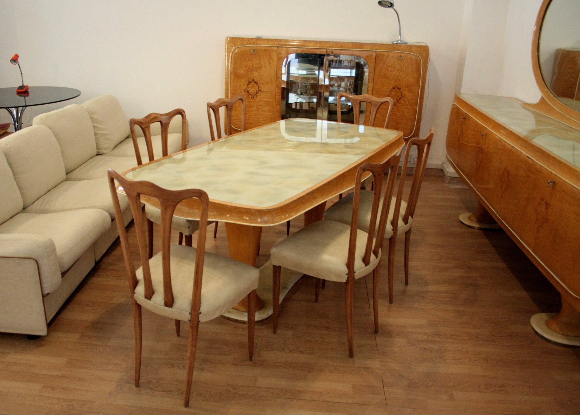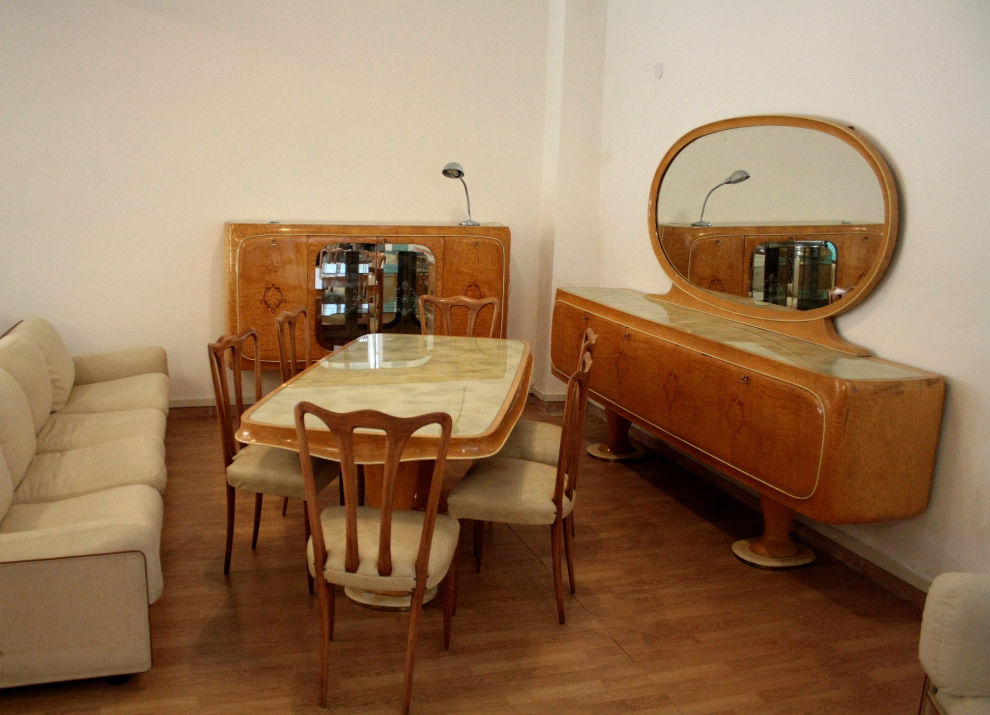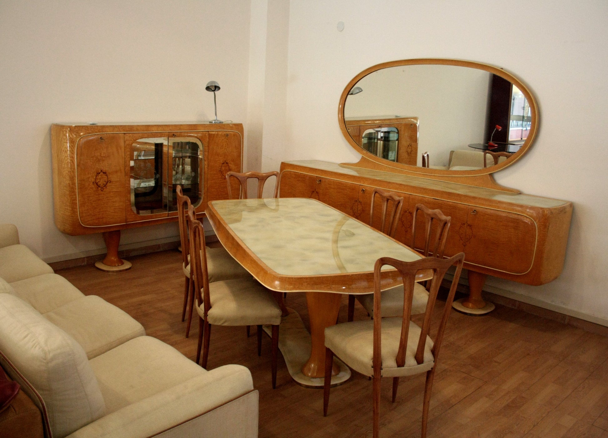 Questa camera da pranzo completa è stata realizzata su disegno di Vittorio Dassi nel 1950.