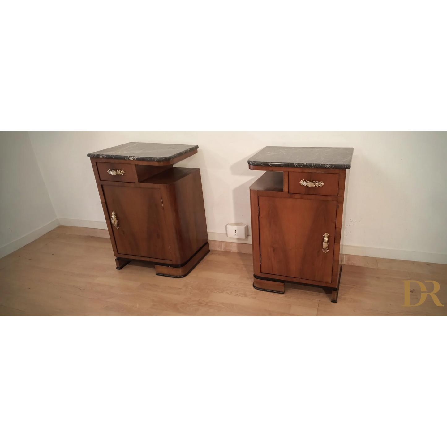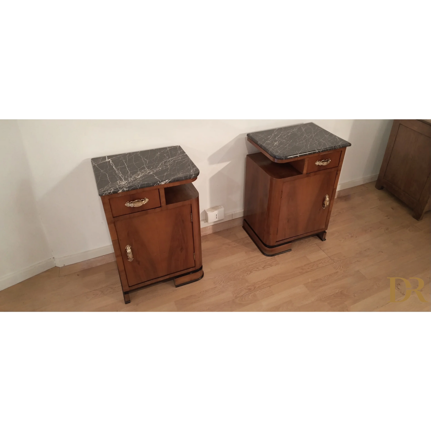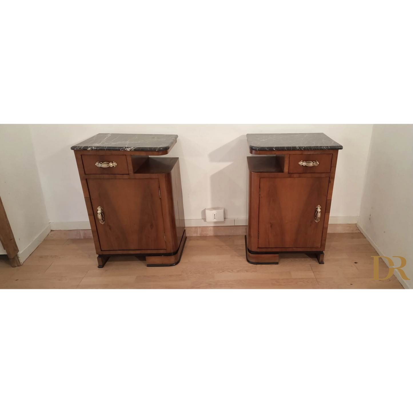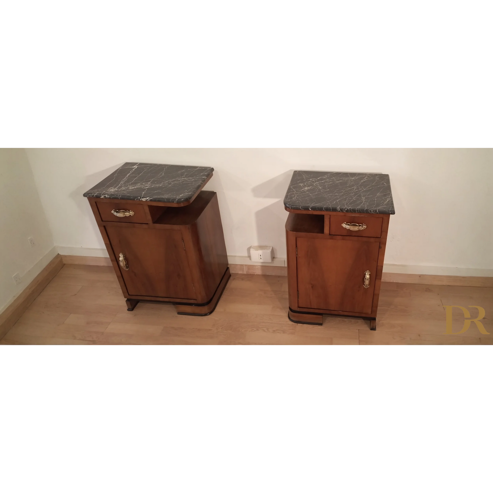 Bellissima coppia di comodini in noce art déco italiano, caratterizzati da un'eleganza senza tempo che riflette la raffinatezza del design degli anni '20 e '30. Questi pezzi d’arredo sono completamente originali, arricchiti da marmi autentici che ne esaltano il fascino e la preziosità. Il noce, con le sue venature uniche, dona a questi comodini una bellezza naturale, mentre il restauro attento a cui sono stati sottoposti ha permesso di riportarli alle loro condizioni originali, mantenendo intatti il design distintivo e i dettagli artigianali tipici dell’art déco italiano. Ogni comodino rappresenta un pezzo di storia che può arricchire qualsiasi ambiente domestico, infondendo un tocco di classe e sofisticatezza.