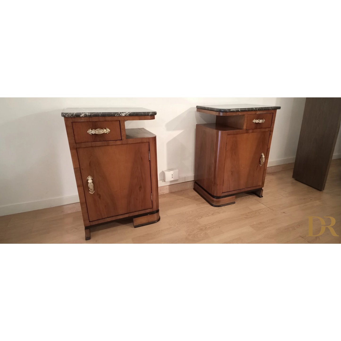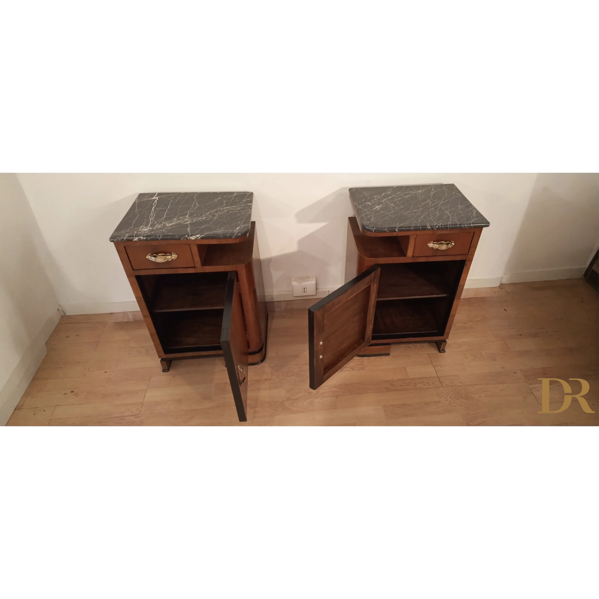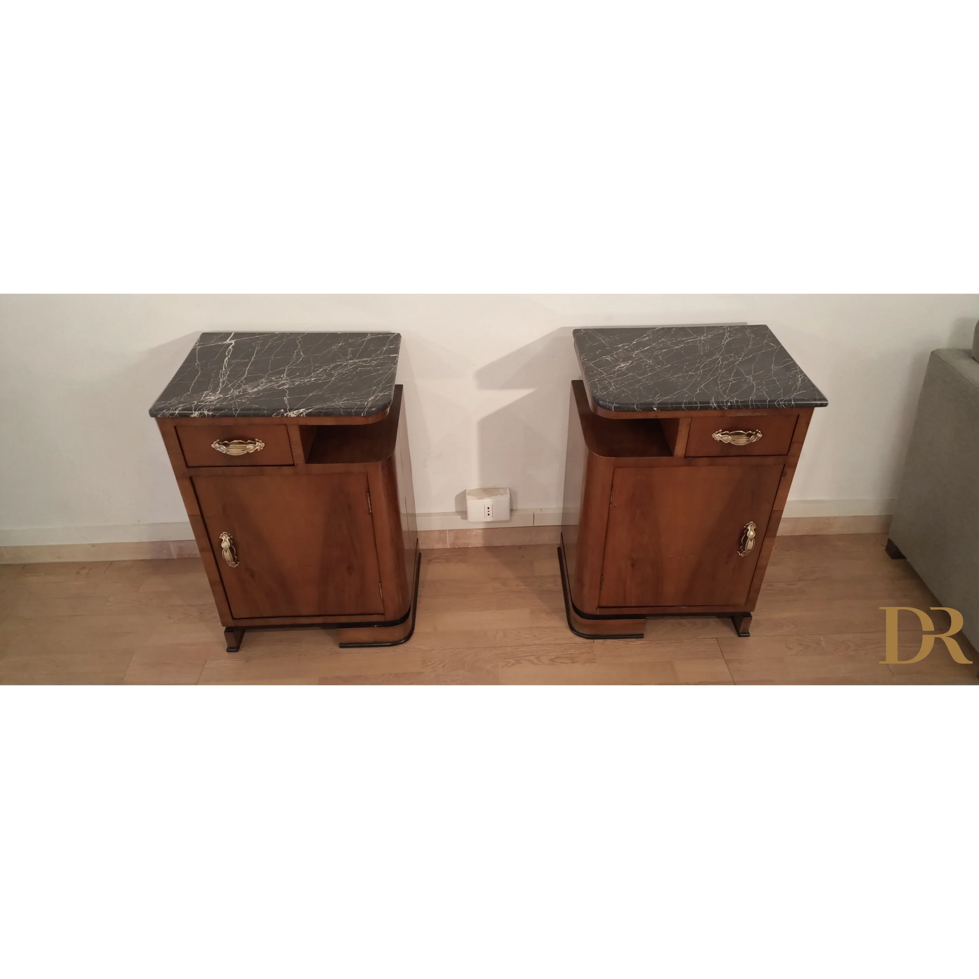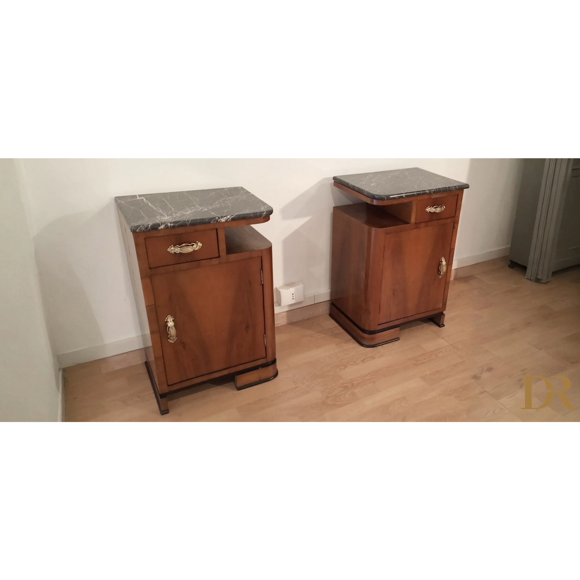 Bellissima coppia di comodini in noce art déco italiano, caratterizzati da un'eleganza senza tempo che riflette la raffinatezza del design degli anni '20 e '30. Questi pezzi d’arredo sono completamente originali, arricchiti da marmi autentici che ne esaltano il fascino e la preziosità. Il noce, con le sue venature uniche, dona a questi comodini una bellezza naturale, mentre il restauro attento a cui sono stati sottoposti ha permesso di riportarli alle loro condizioni originali, mantenendo intatti il design distintivo e i dettagli artigianali tipici dell’art déco italiano. Ogni comodino rappresenta un pezzo di storia che può arricchire qualsiasi ambiente domestico, infondendo un tocco di classe e sofisticatezza.