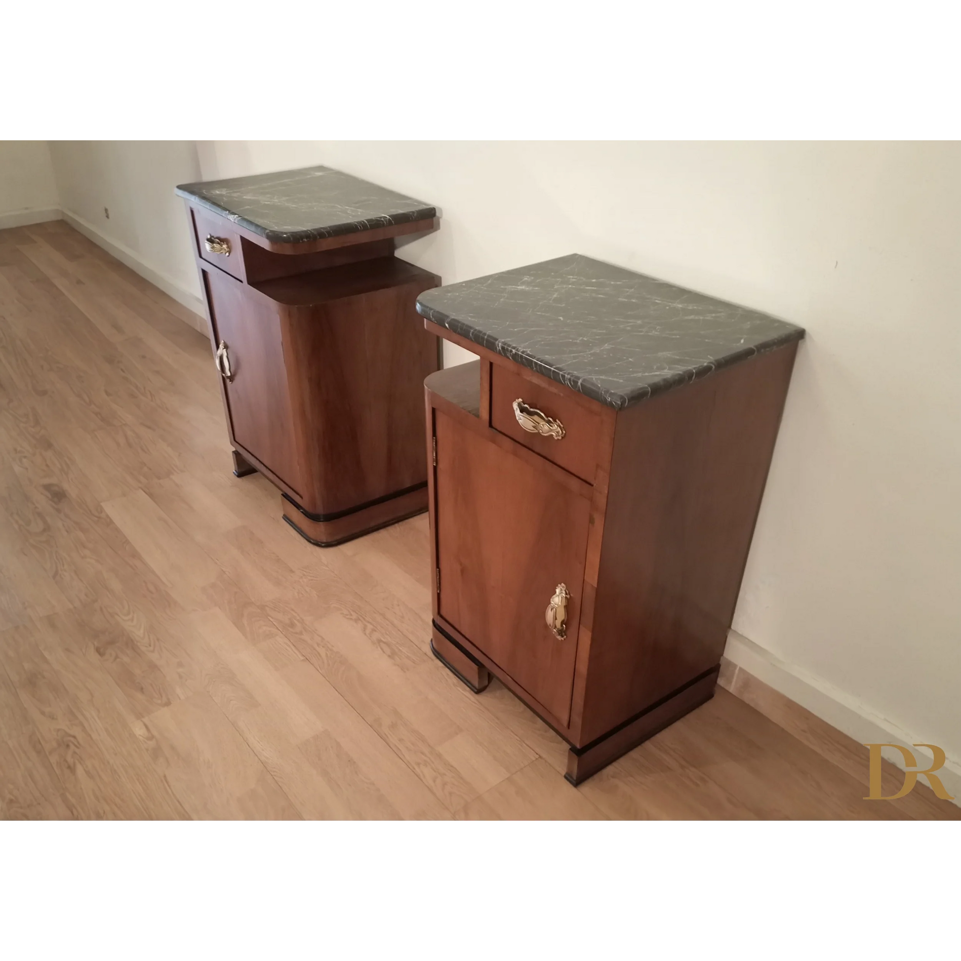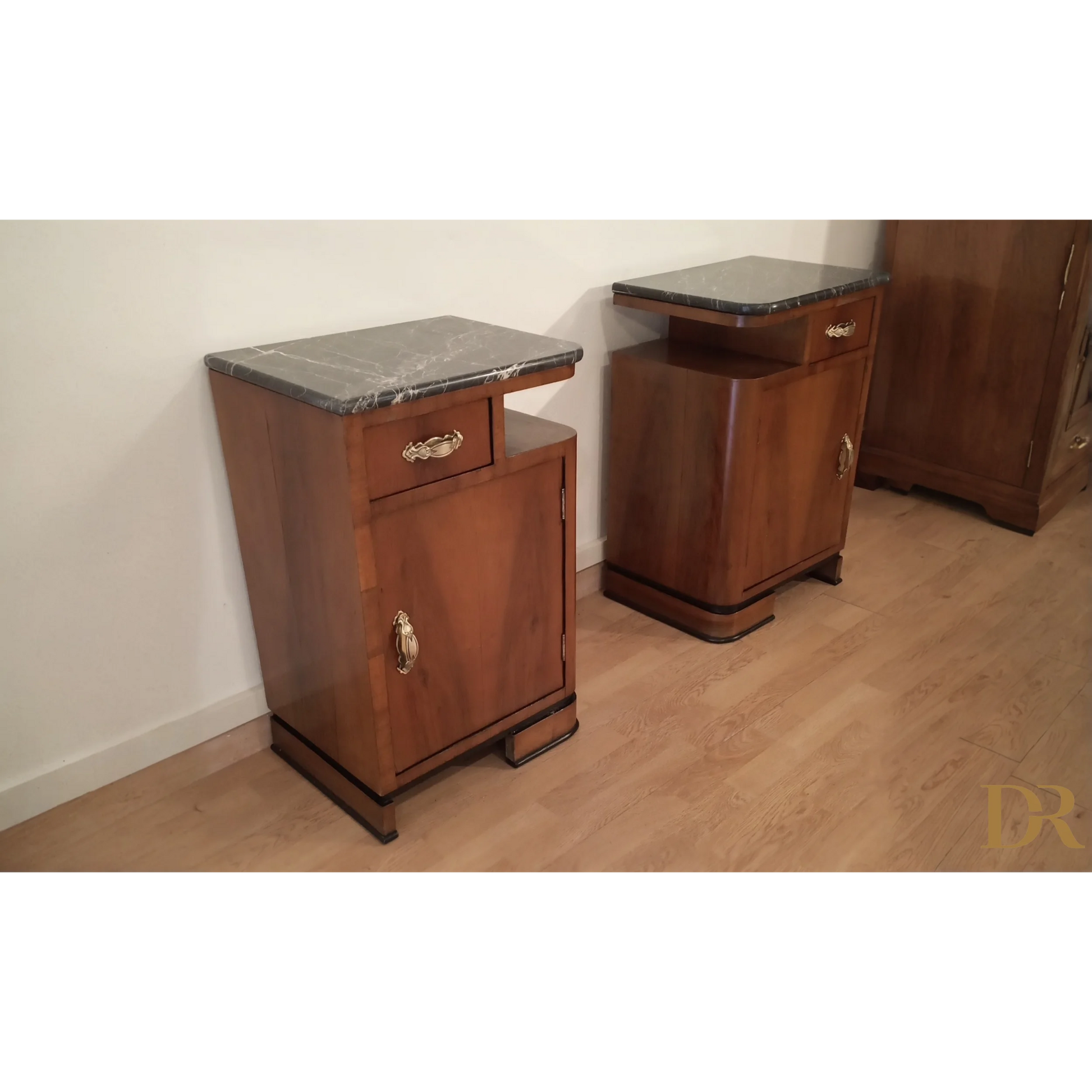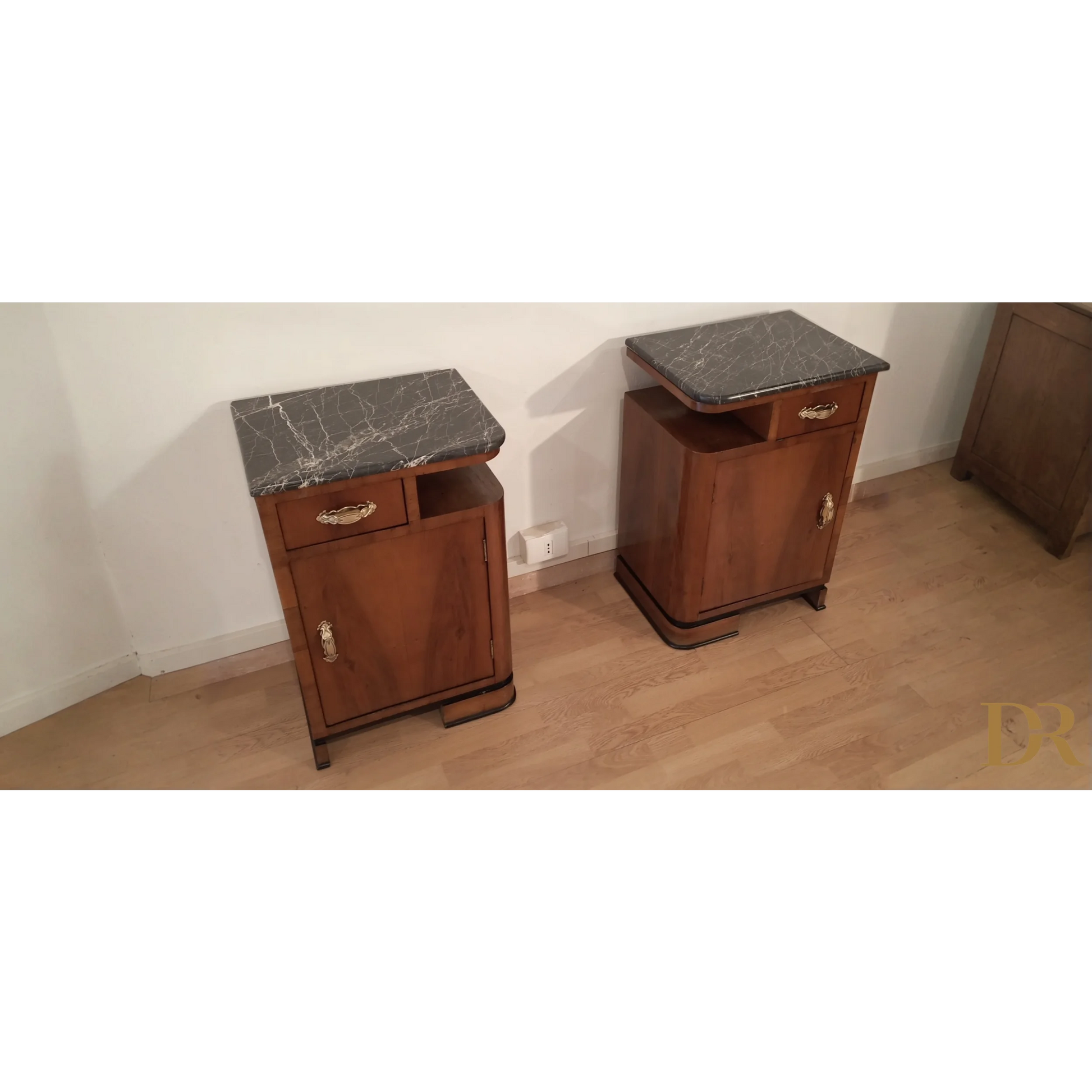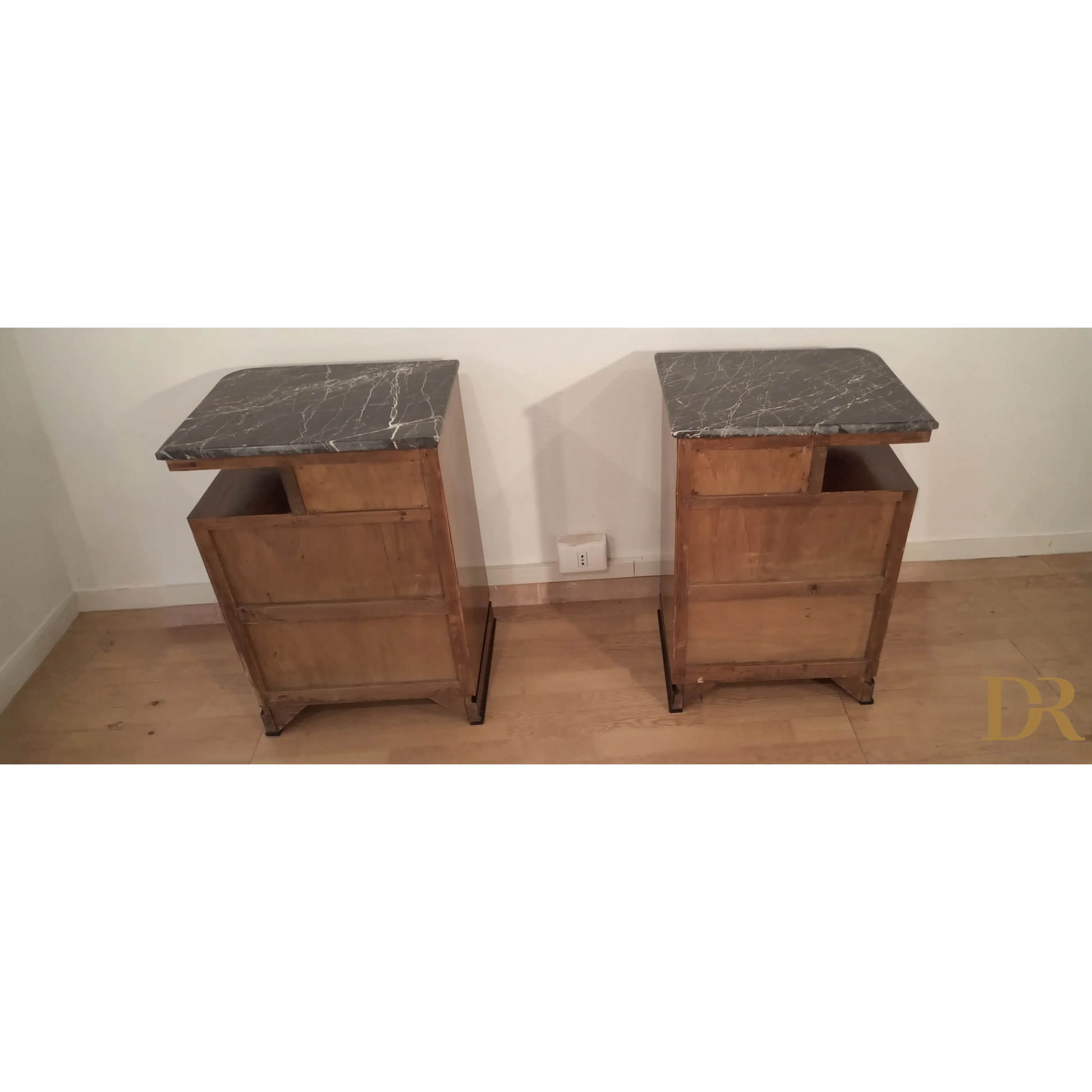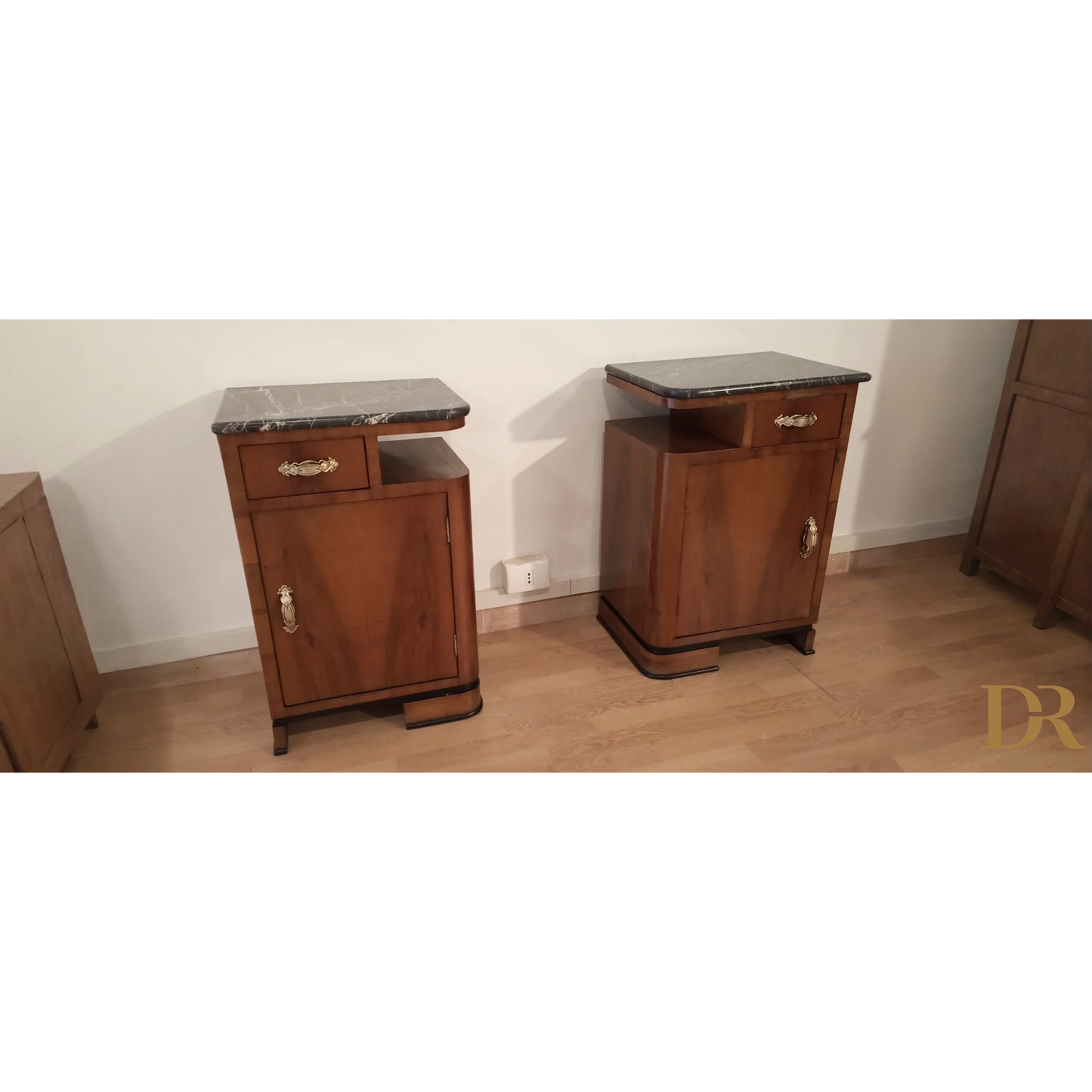 Bellissima coppia di comodini in noce art déco italiano, caratterizzati da un'eleganza senza tempo che riflette la raffinatezza del design degli anni '20 e '30. Questi pezzi d’arredo sono completamente originali, arricchiti da marmi autentici che ne esaltano il fascino e la preziosità. Il noce, con le sue venature uniche, dona a questi comodini una bellezza naturale, mentre il restauro attento a cui sono stati sottoposti ha permesso di riportarli alle loro condizioni originali, mantenendo intatti il design distintivo e i dettagli artigianali tipici dell’art déco italiano. Ogni comodino rappresenta un pezzo di storia che può arricchire qualsiasi ambiente domestico, infondendo un tocco di classe e sofisticatezza.