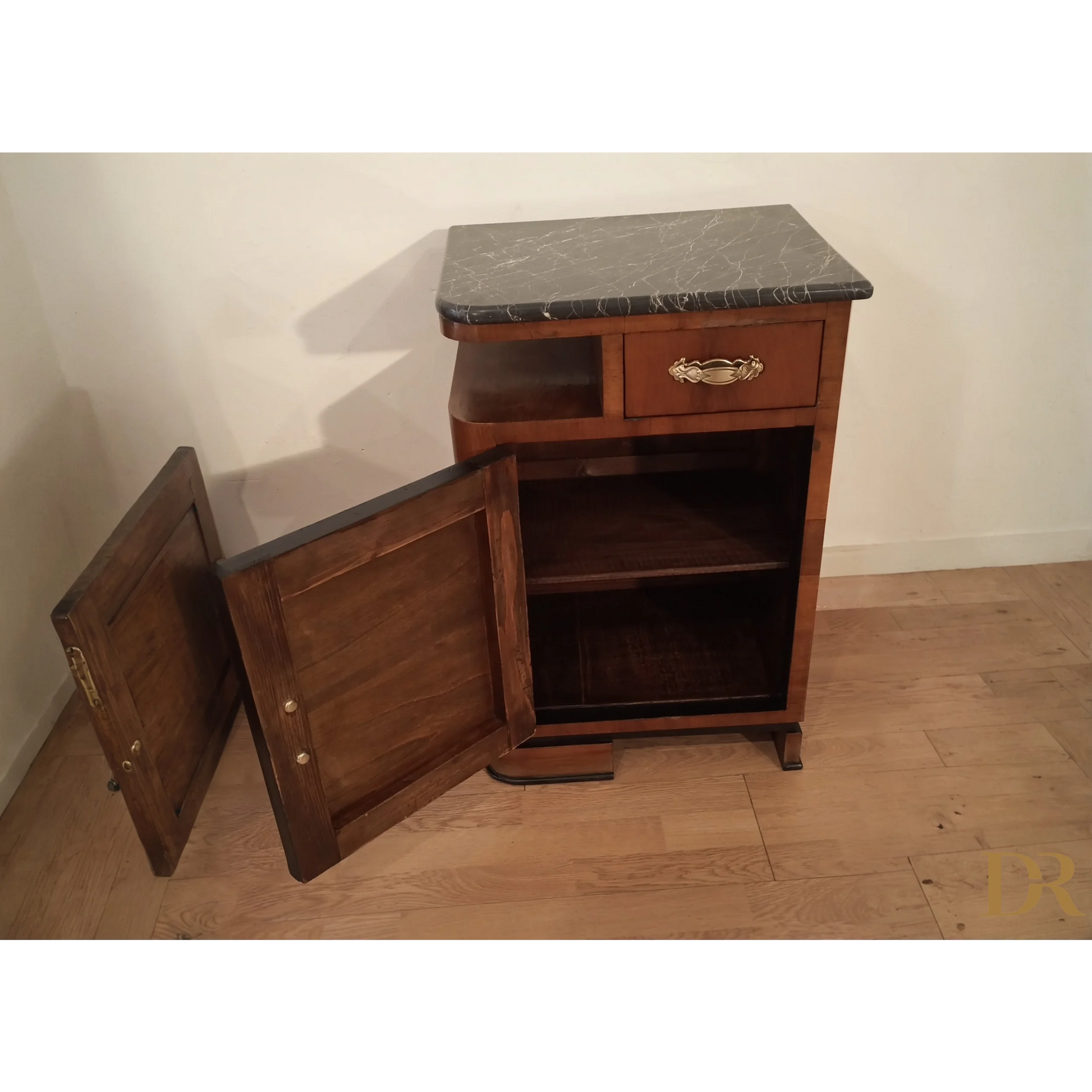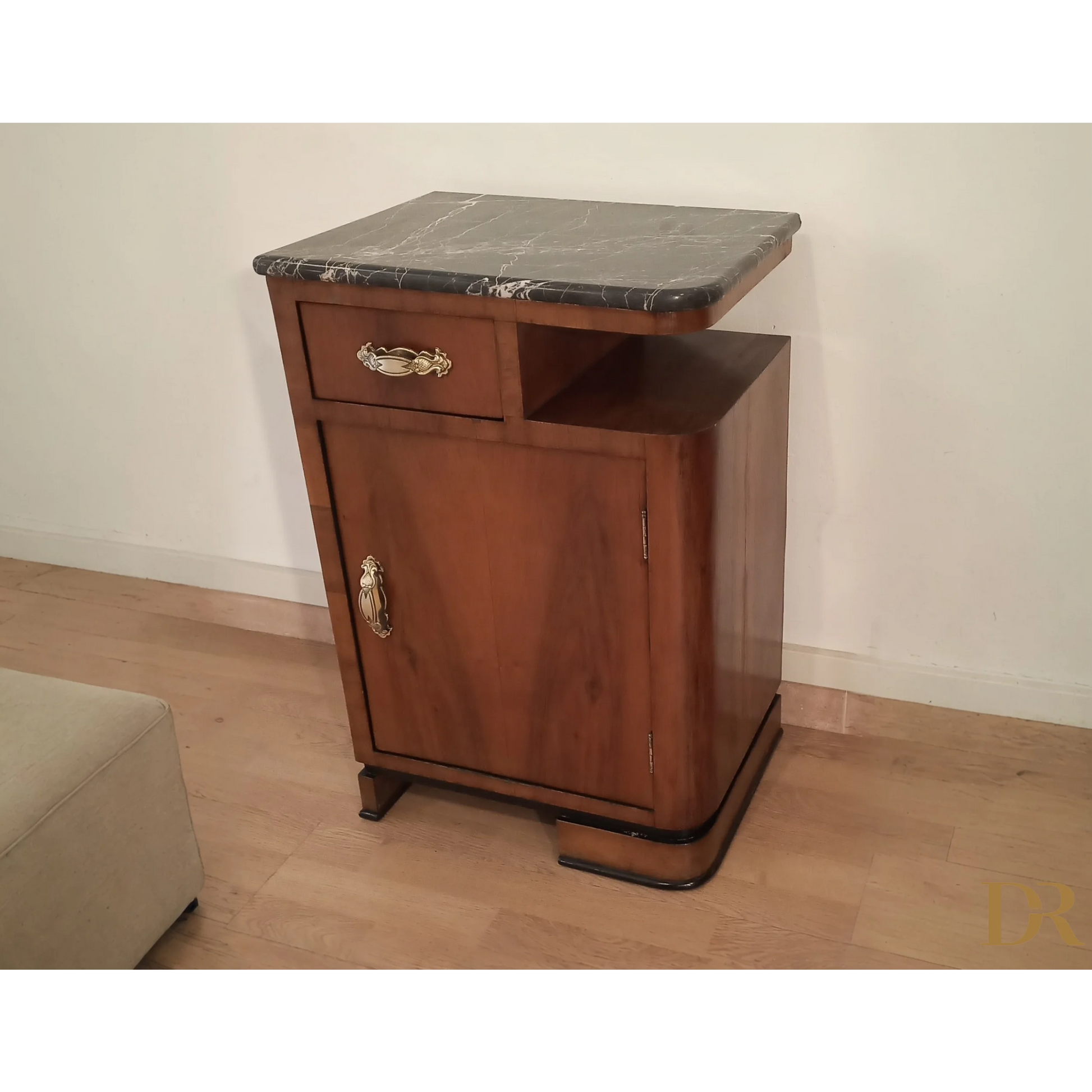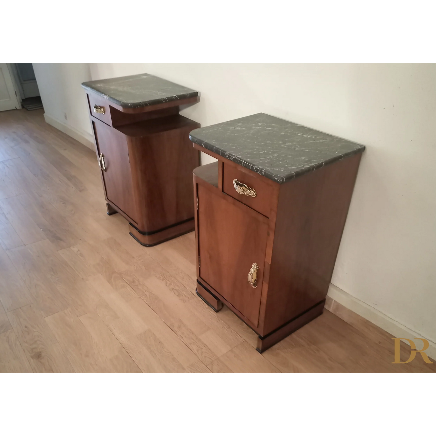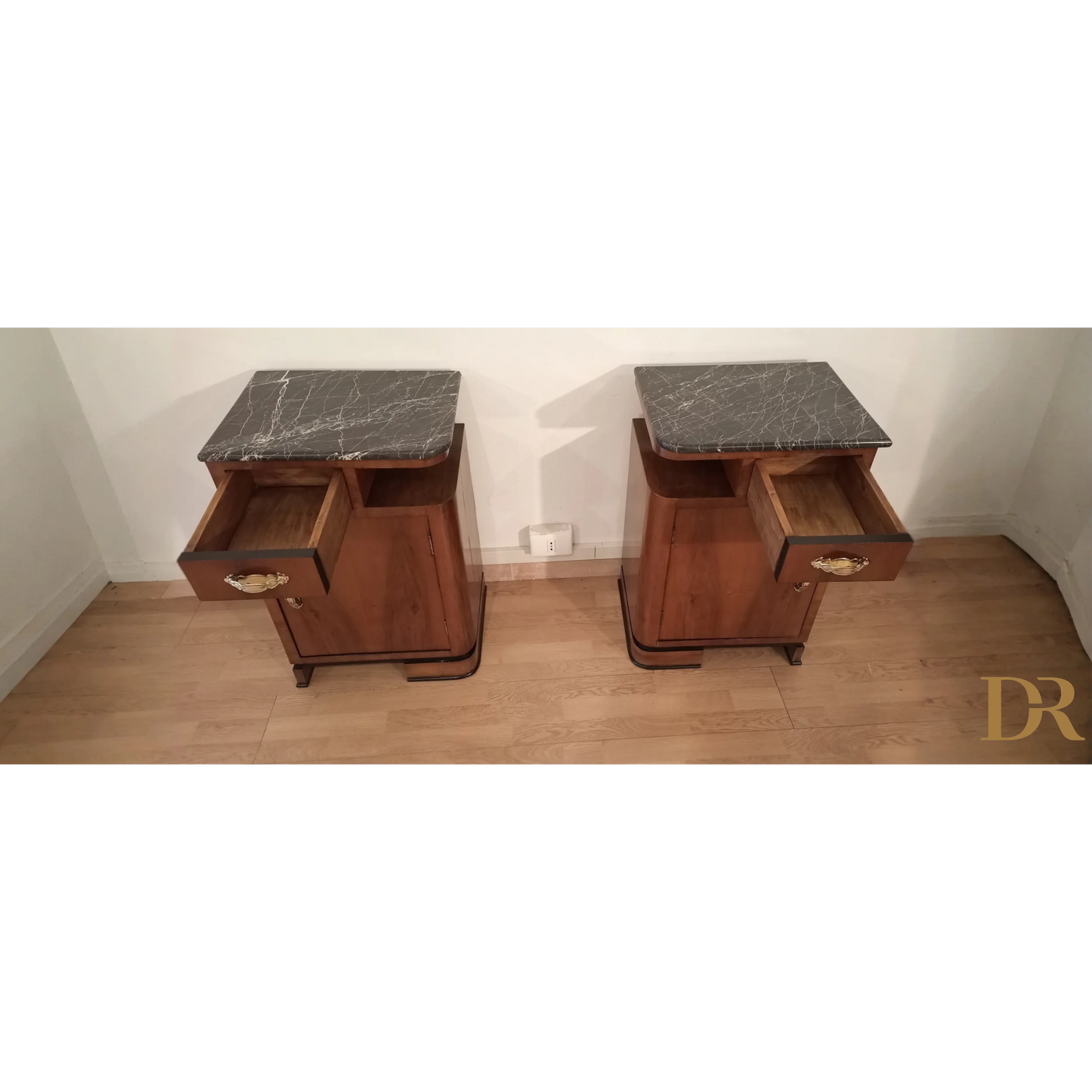Bellissima coppia di comodini in noce art déco italiano, caratterizzati da un'eleganza senza tempo che riflette la raffinatezza del design degli anni '20 e '30. Questi pezzi d’arredo sono completamente originali, arricchiti da marmi autentici che ne esaltano il fascino e la preziosità. Il noce, con le sue venature uniche, dona a questi comodini una bellezza naturale, mentre il restauro attento a cui sono stati sottoposti ha permesso di riportarli alle loro condizioni originali, mantenendo intatti il design distintivo e i dettagli artigianali tipici dell’art déco italiano. Ogni comodino rappresenta un pezzo di storia che può arricchire qualsiasi ambiente domestico, infondendo un tocco di classe e sofisticatezza.