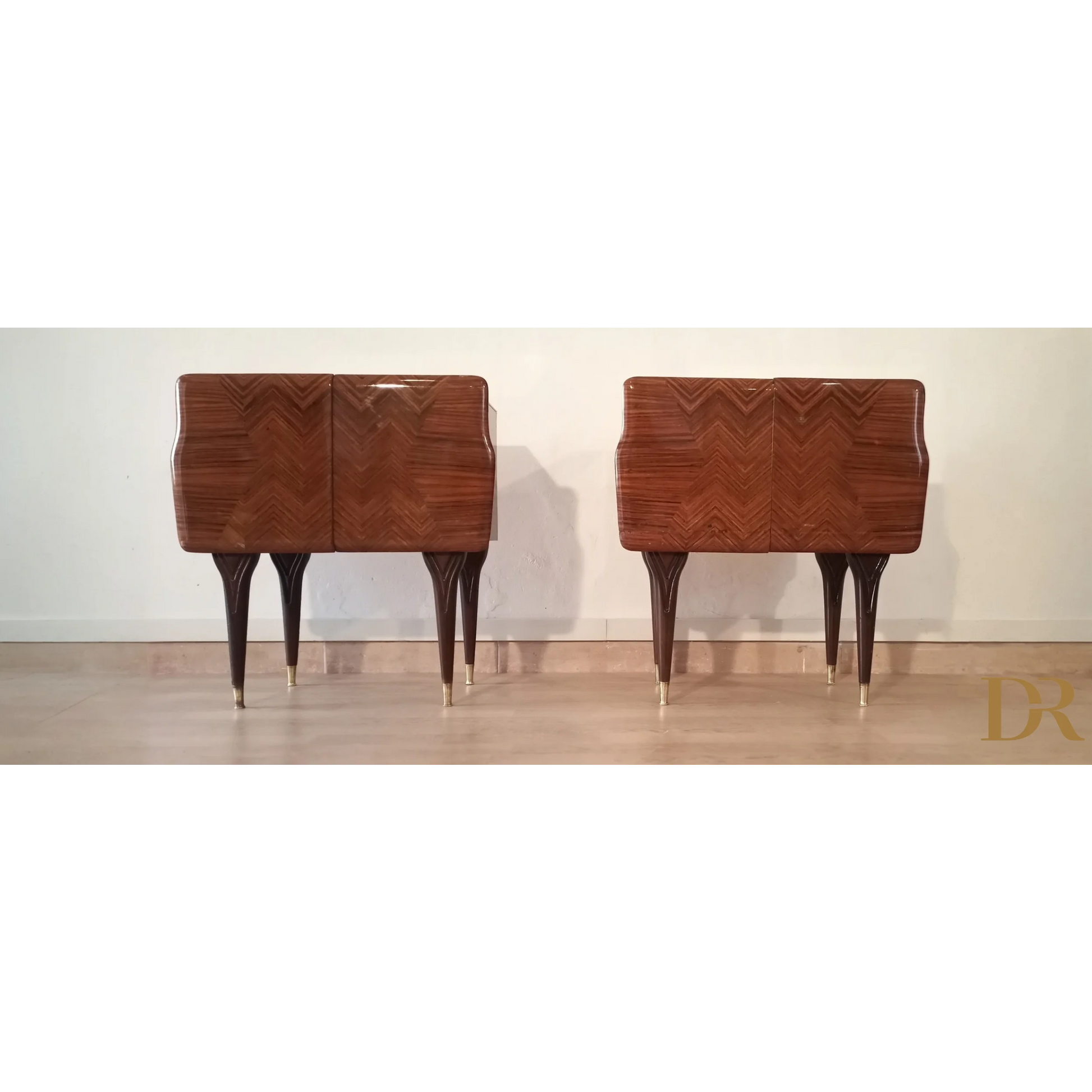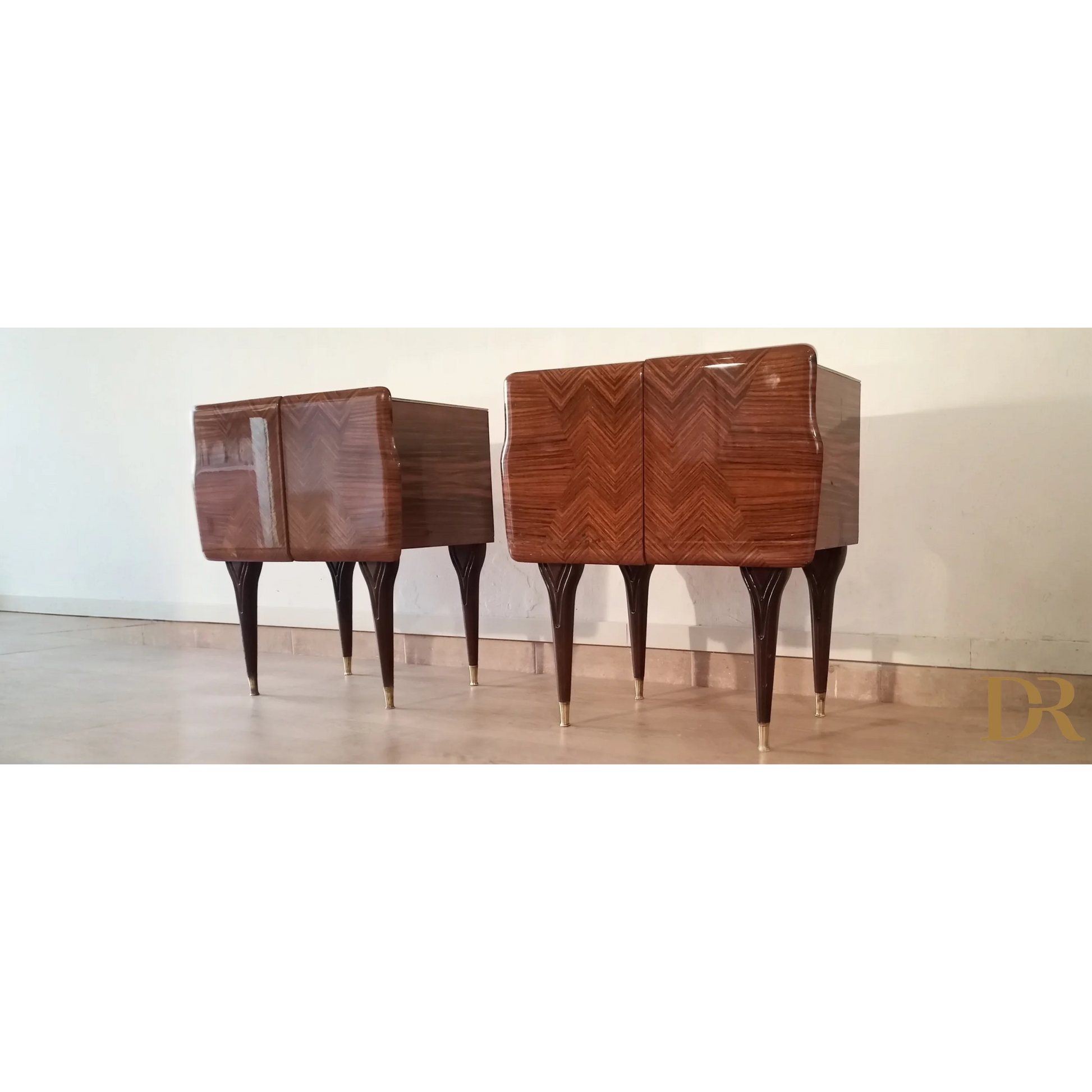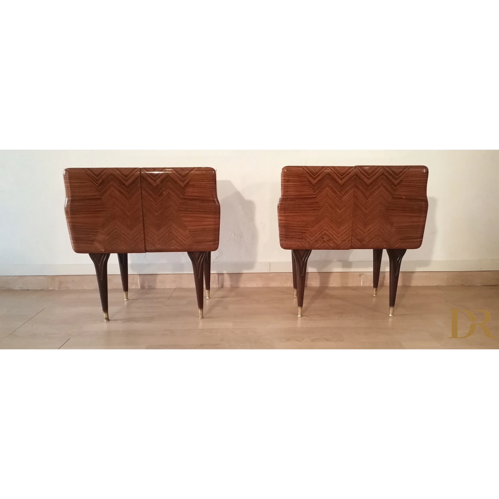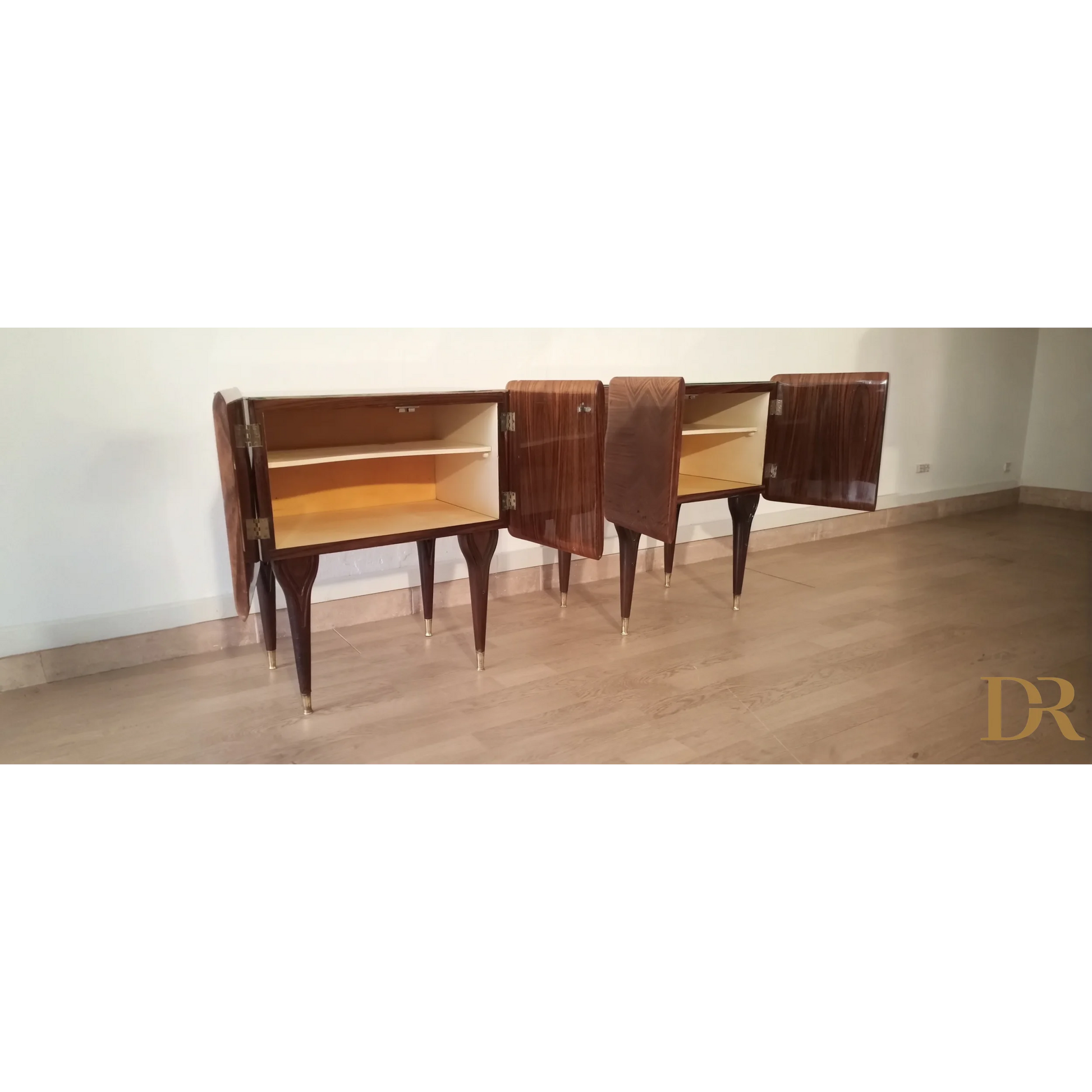 Nonostante la loro estetica vintage, questi comodini Italiani Mid-Century si integrano perfettamente anche in un contesto moderno, fungendo da complemento di design o come pezzo di contrasto. La loro bellezza senza tempo e la qualità dei materiali utilizzati garantiscono eccellenti condizioni strutturali, rendendoli non solo un acquisto visivamente attraente, ma anche un investimento duraturo per arricchire la vostra casa, infondendo in essa un sapore di nostalgia e modernità al contempo.