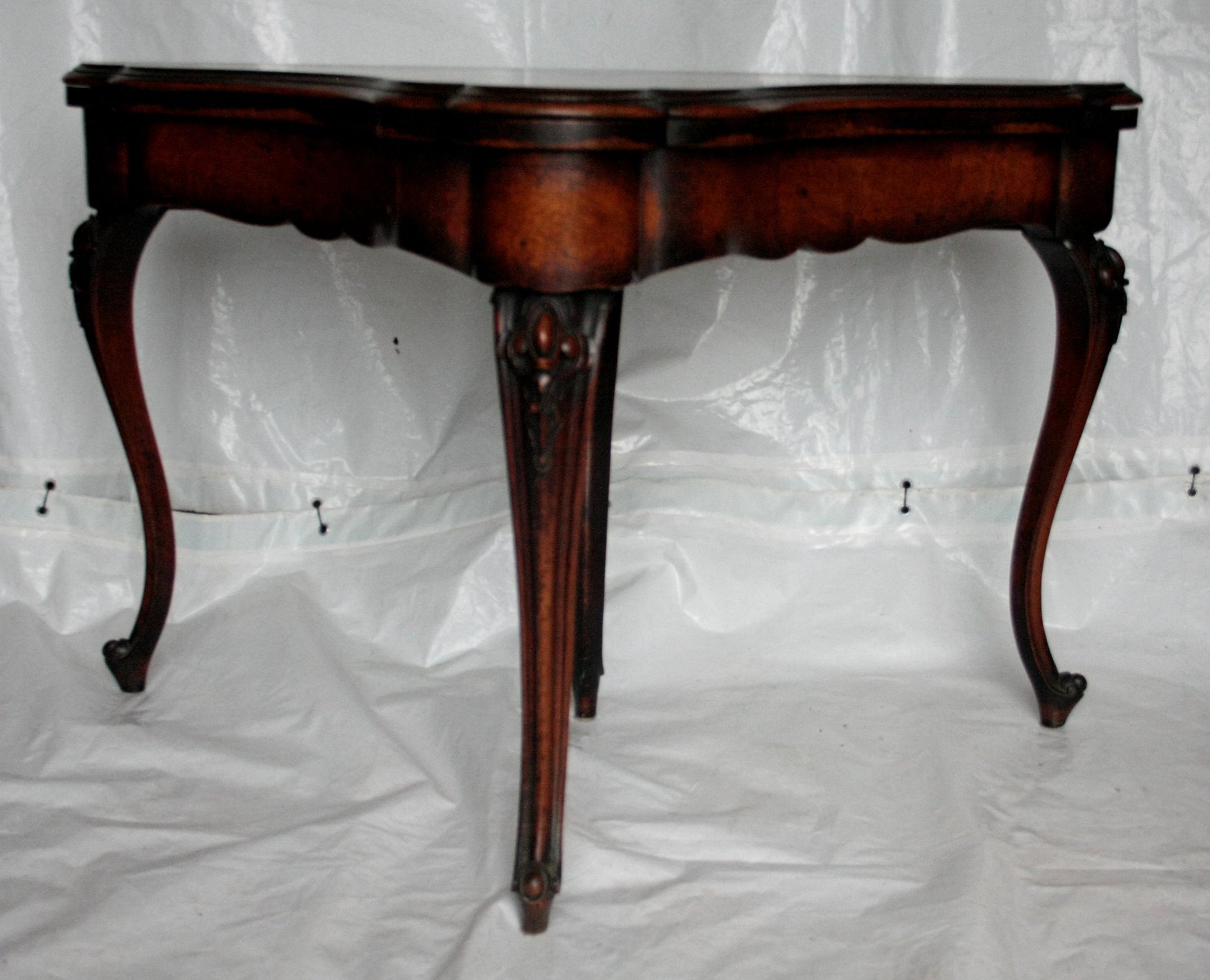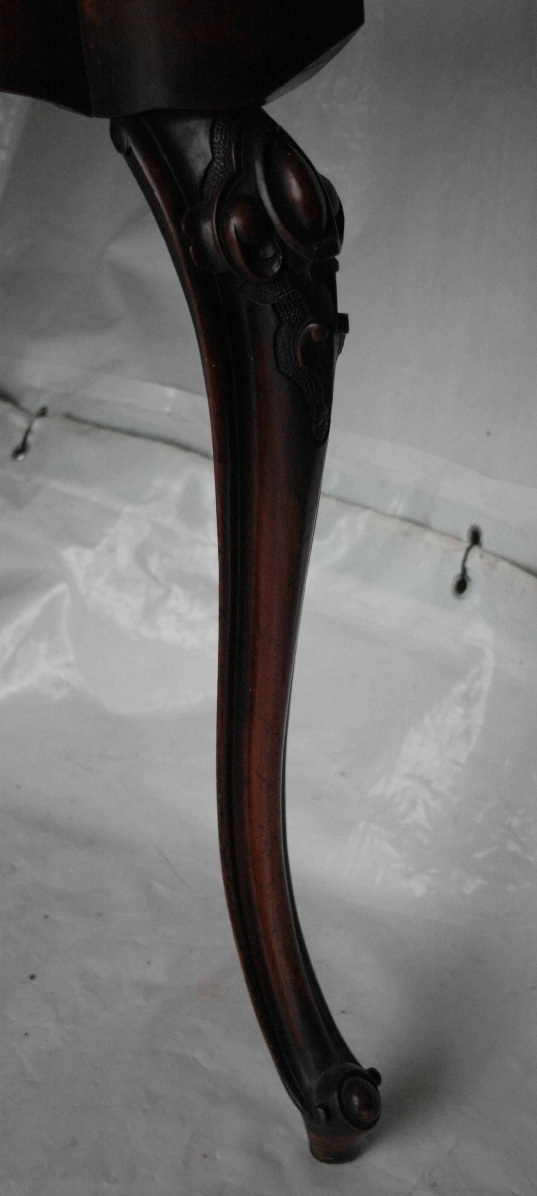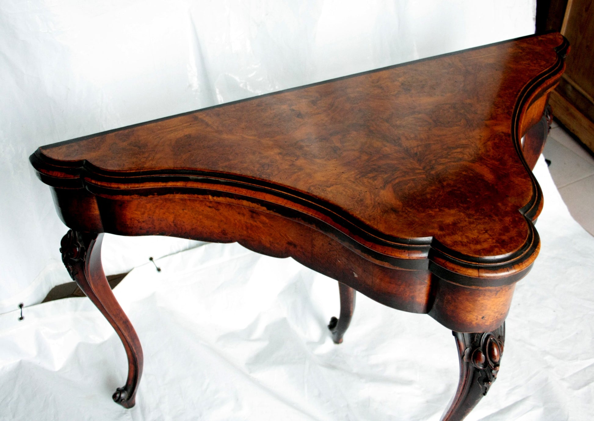 Questo raffinato tavolo da gioco di manifattura inglese tardo settecentesca rappresenta un esemplare di eccezionale qualità ebanistica. Il piano ribaltabile, realizzato in pregiato mogano a fiamma con venature particolarmente pronunciate, rivela all'apertura una superficie di gioco rivestita in baize verde, incorniciata da una bordura in mogano a fiamma meticolosamente lavorata. La struttura si distingue per l'elegante grembiule perimetrale finemente smerlato che si raccorda armoniosamente alle gambe cabriole, caratterizzate da una curvatura sinuosa tipica dello stile dell'epoca. La silhouette complessiva evidenzia proporzioni perfettamente bilanciate, testimonianza della maestria artigianale del periodo georgiano. Le dimensioni del mobile, 123 cm di larghezza per 60 cm di profondità e 76 cm di altezza da chiuso, si trasformano in 123 cm di larghezza per 121 cm di profondità e 75 cm di altezza quando aperto, rendendolo un elemento versatile e funzionale per ambienti di rappresentanza. Un autentico pezzo da collezione che coniuga valore storico, raffinatezza estetica e praticità d'uso.
