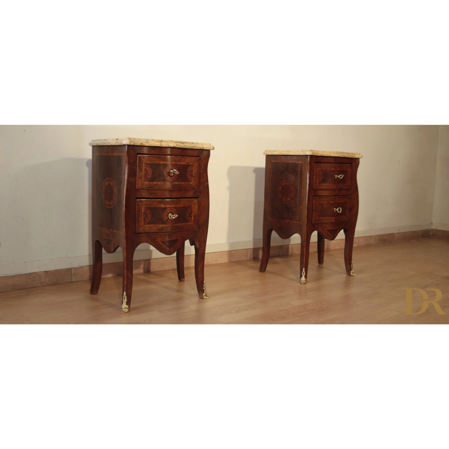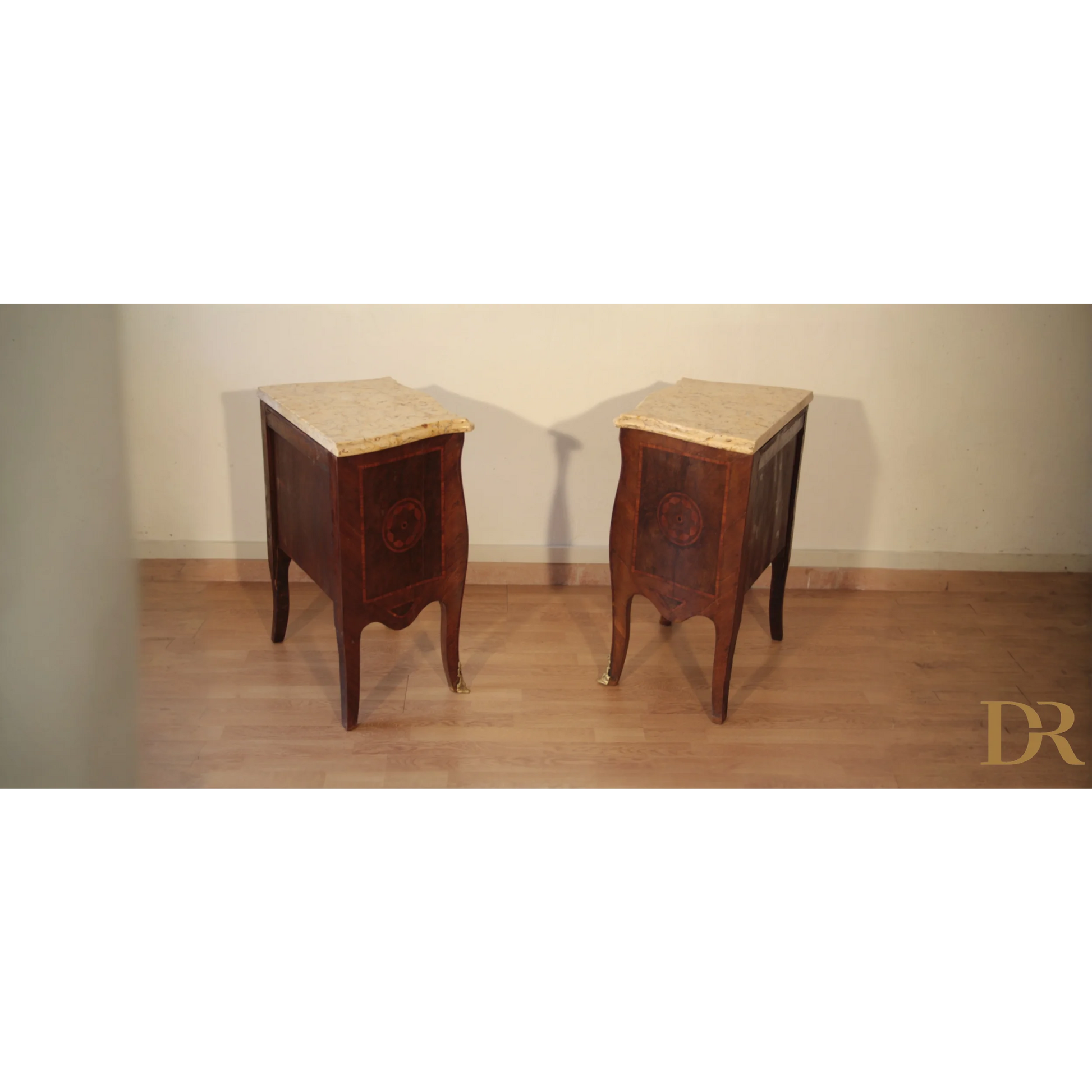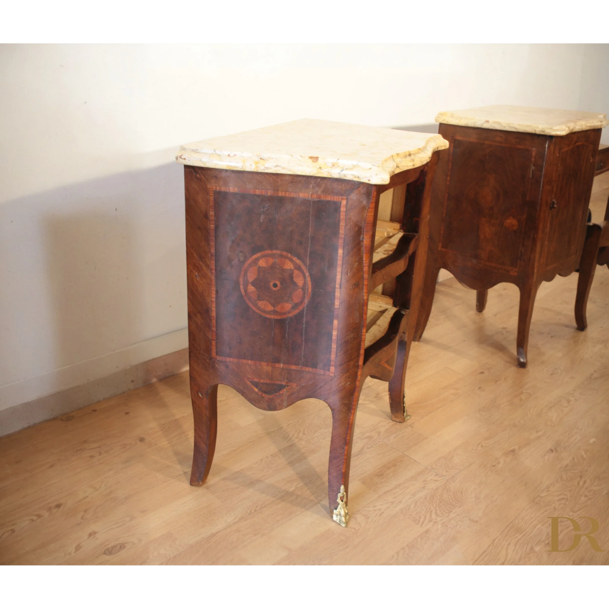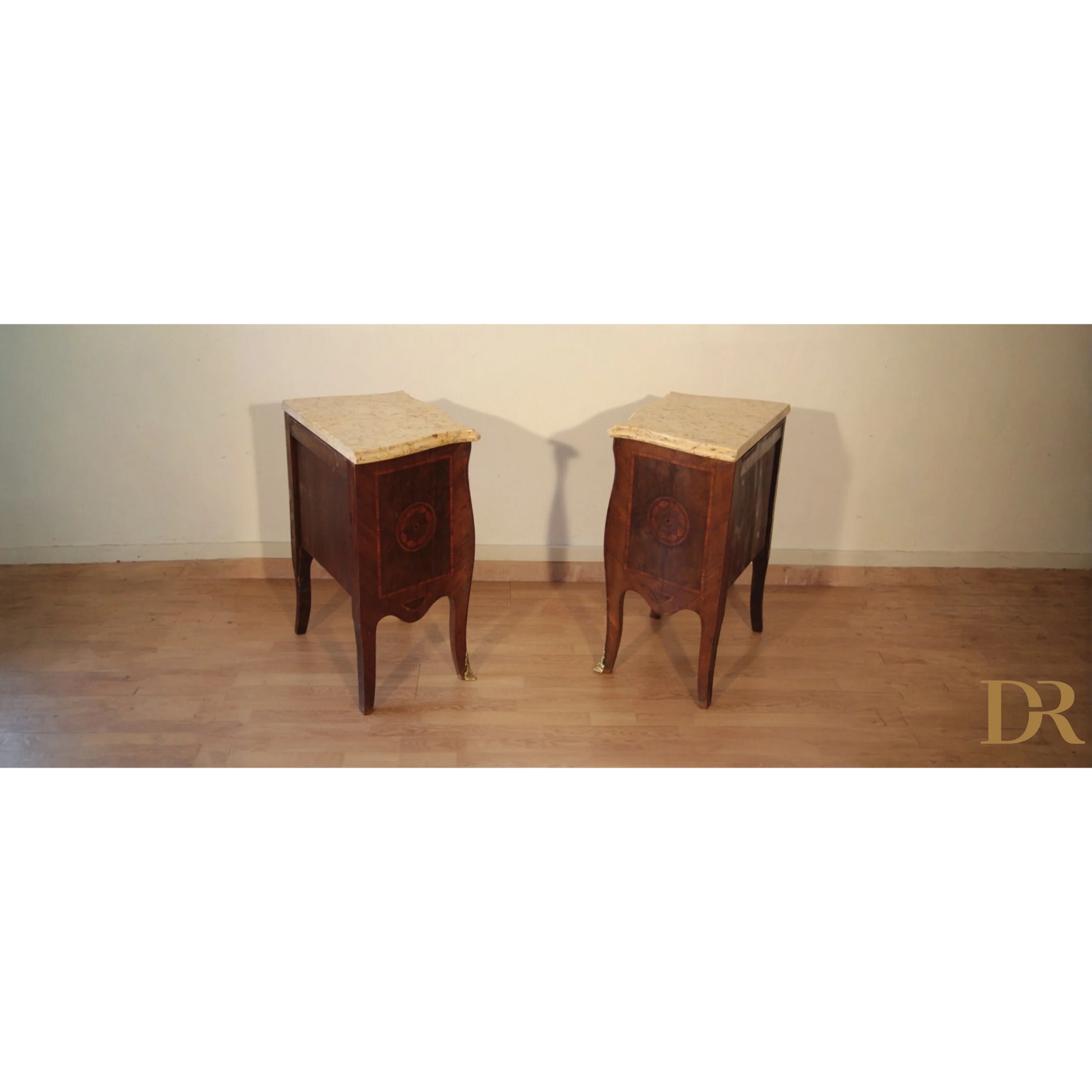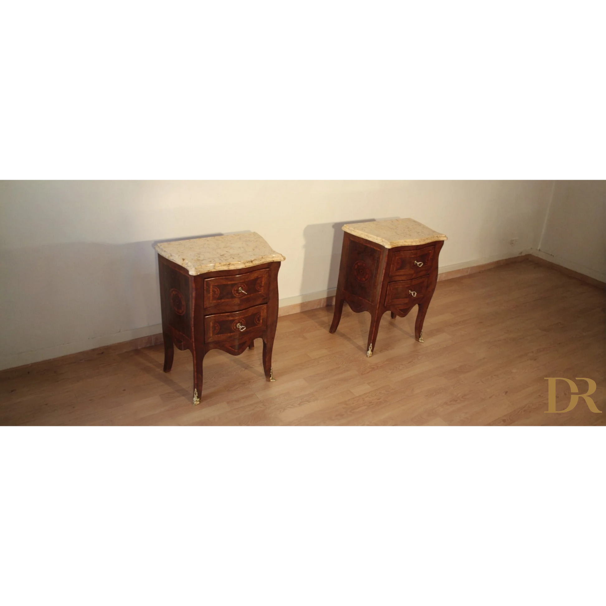 Coppia comodini in stile Luigi XV in bois de rose intarsiati - Restaurati