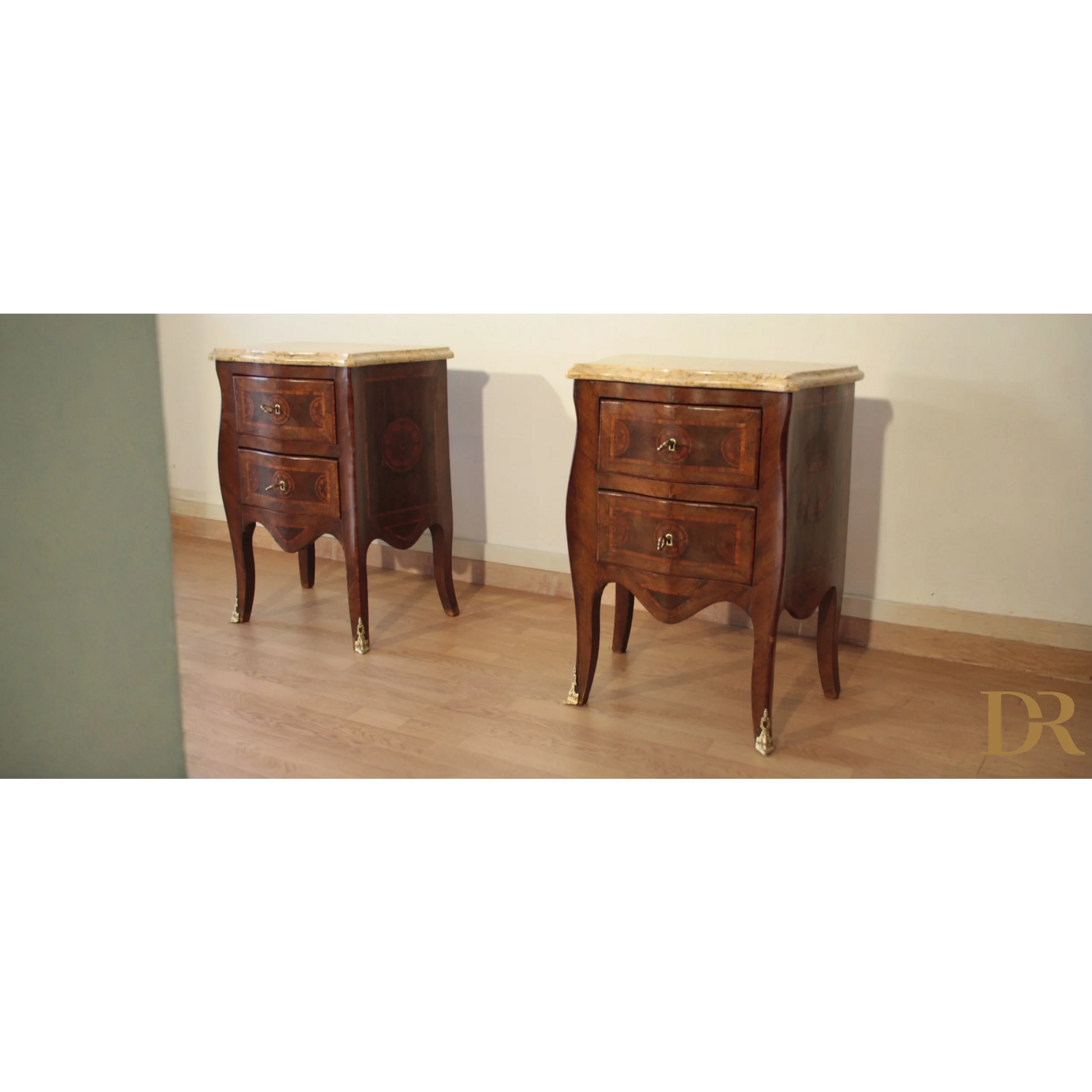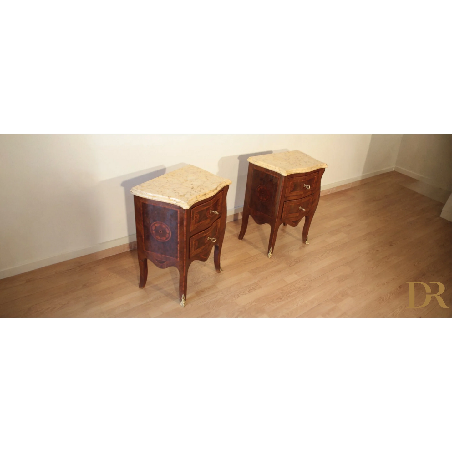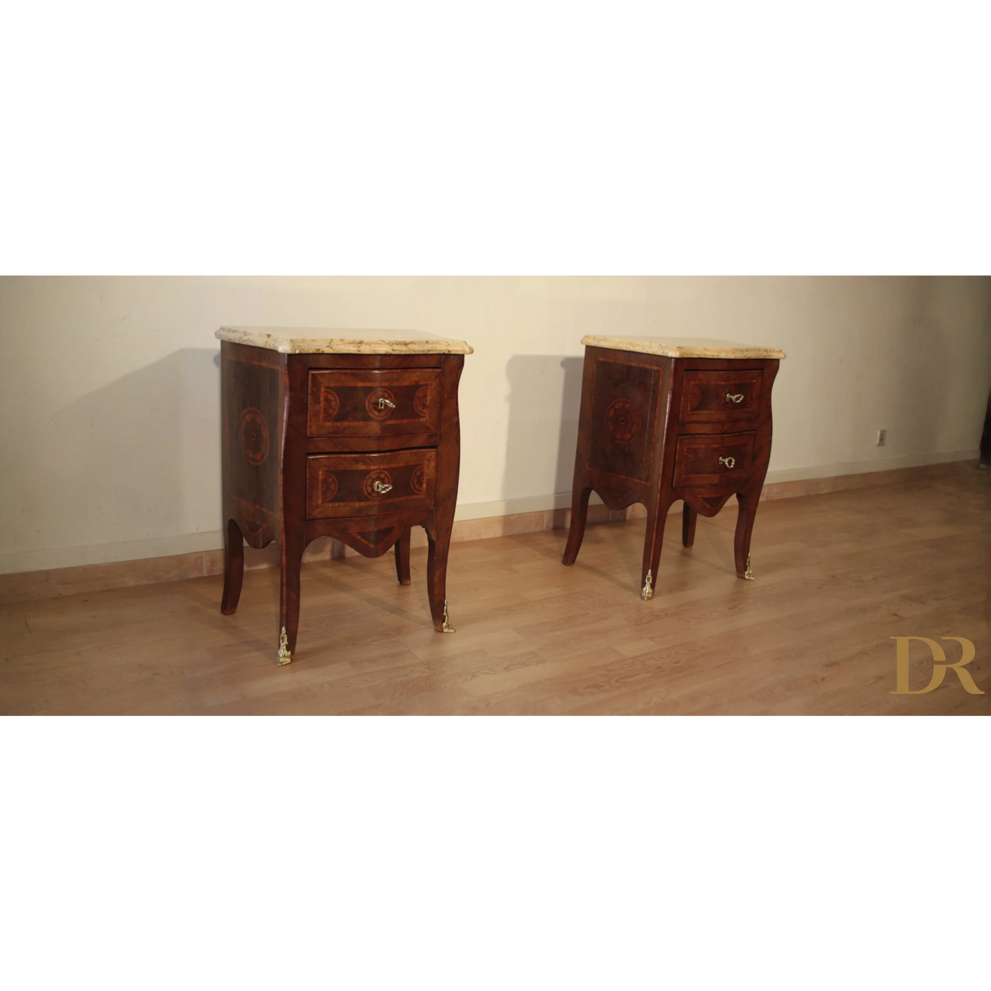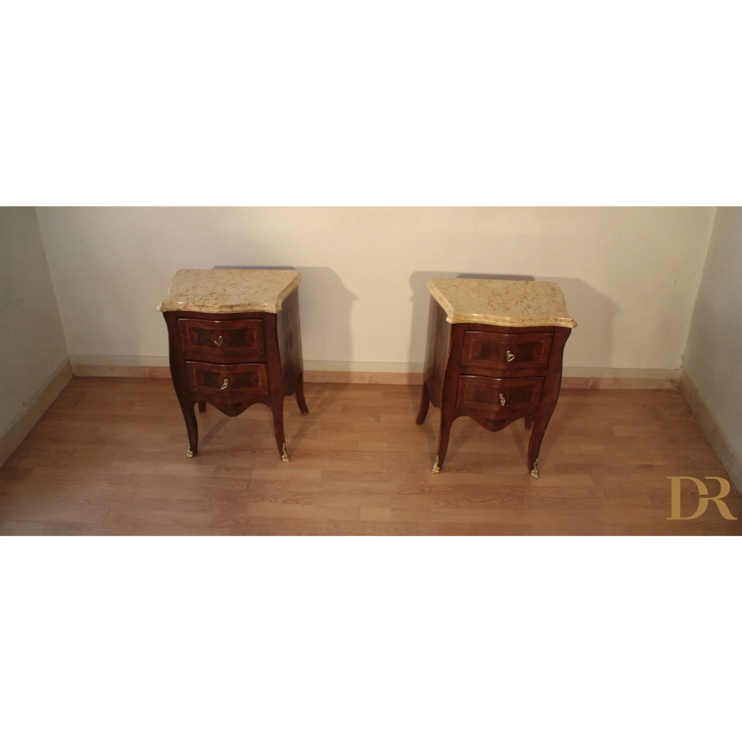 Coppia comodini in stile Luigi XV in bois de rose intarsiati - Restaurati