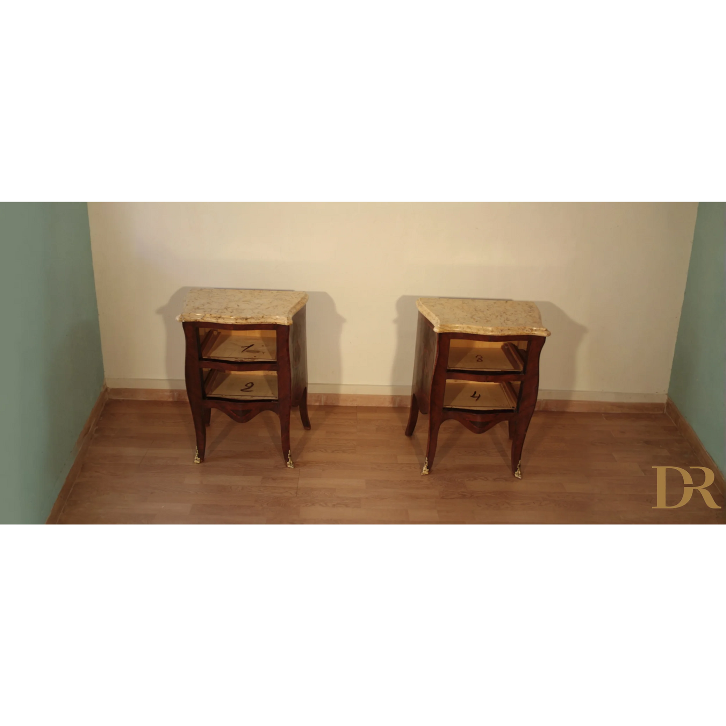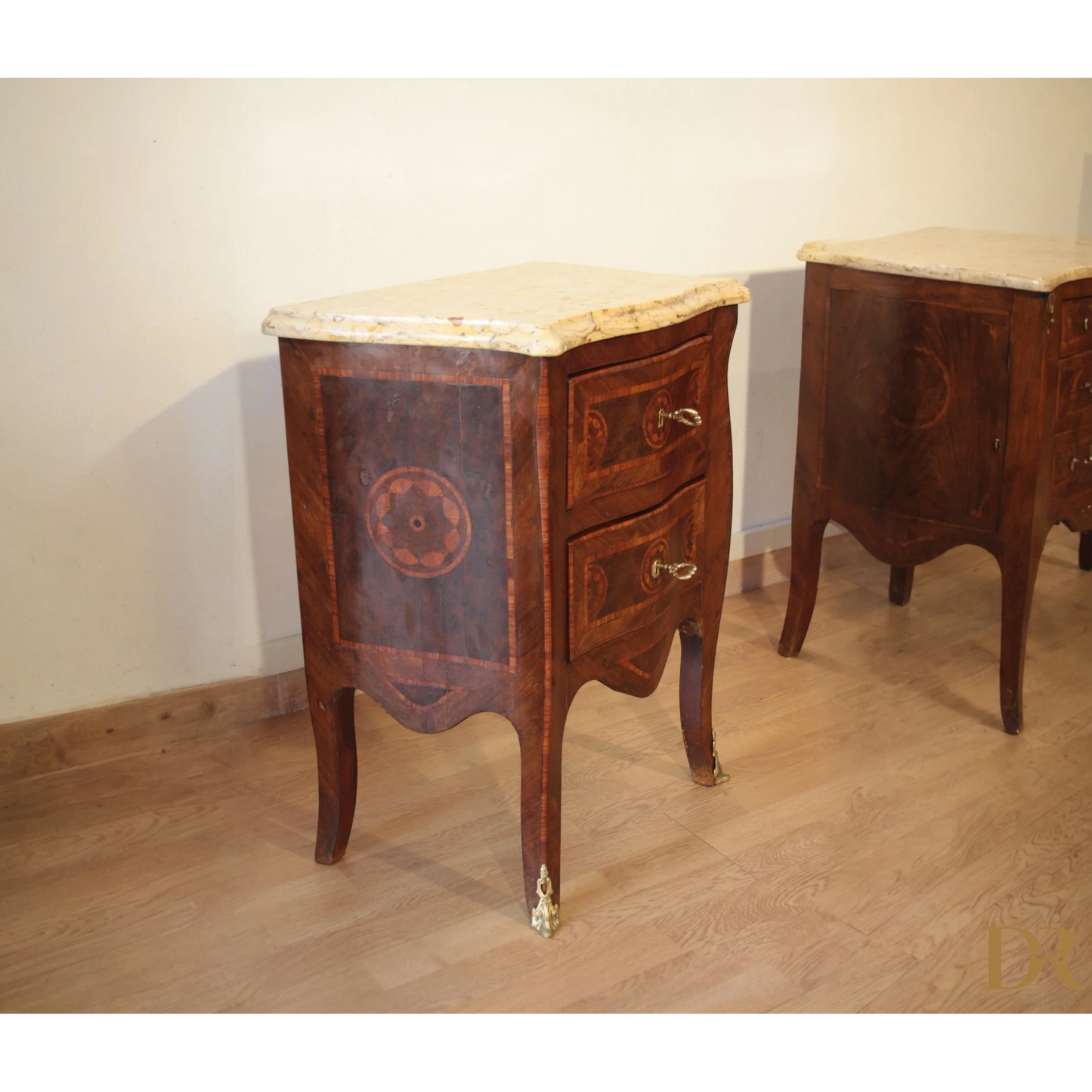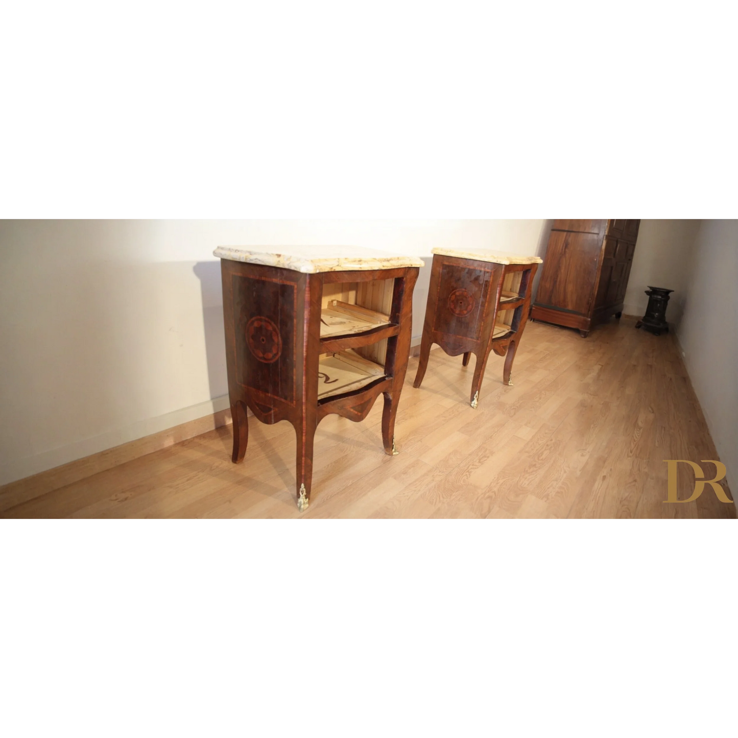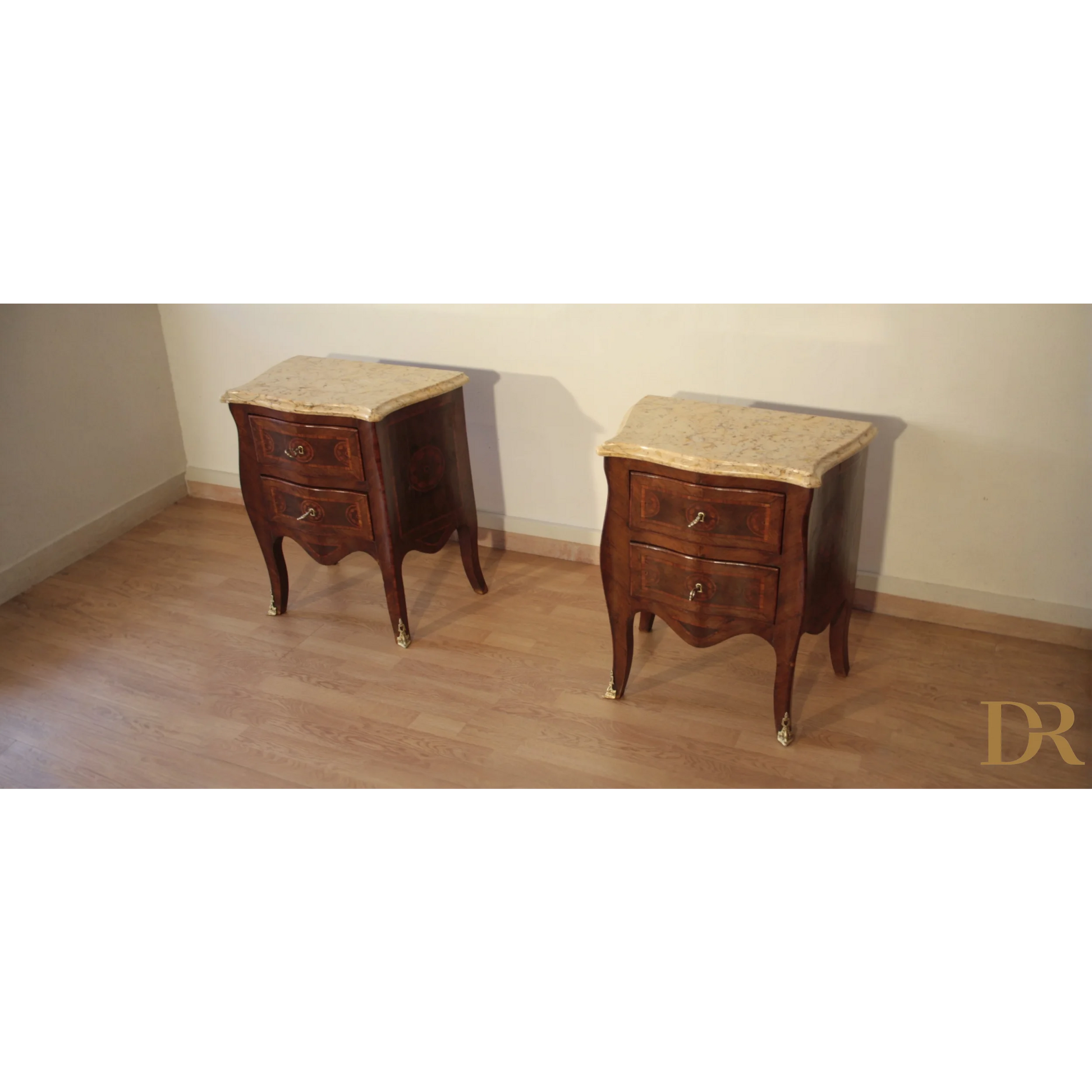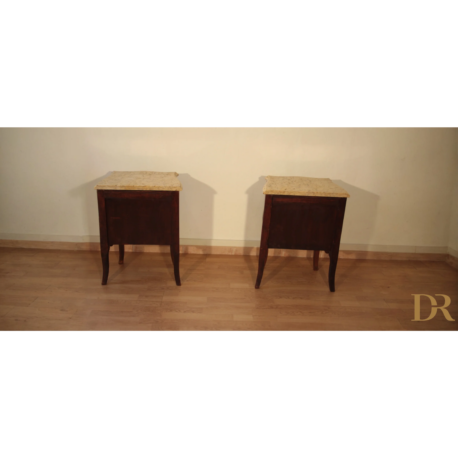 Coppia comodini in stile Luigi XV in bois de rose intarsiati - Restaurati