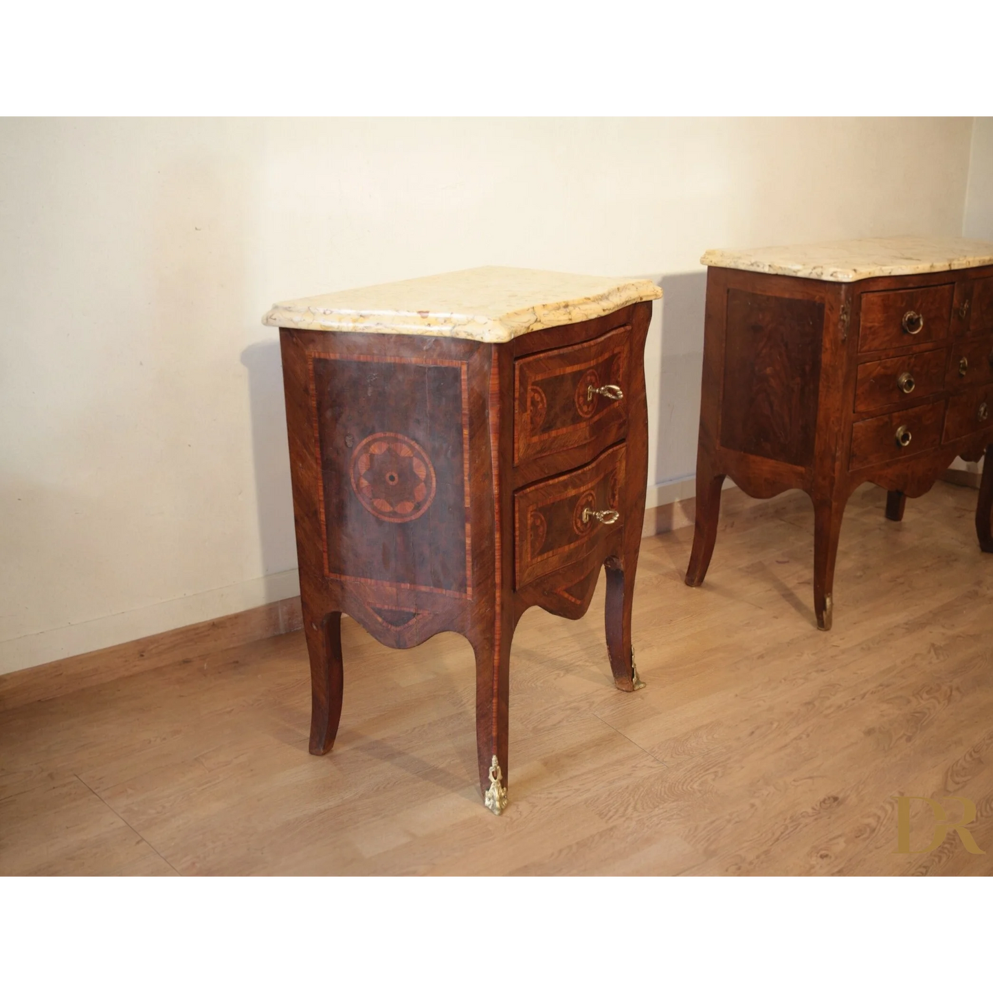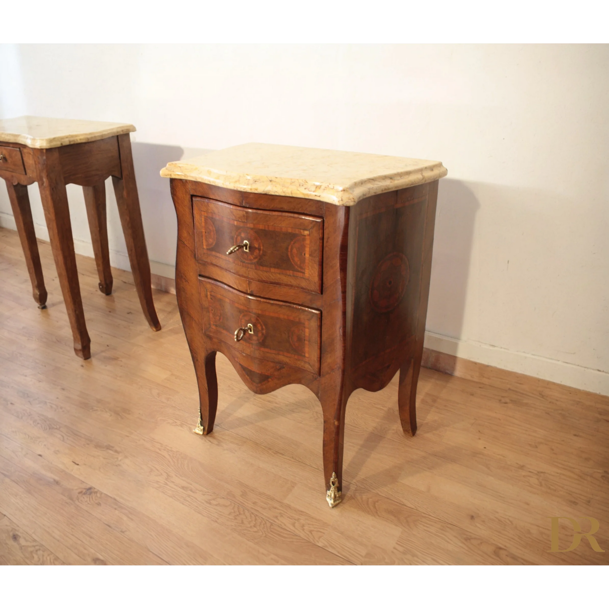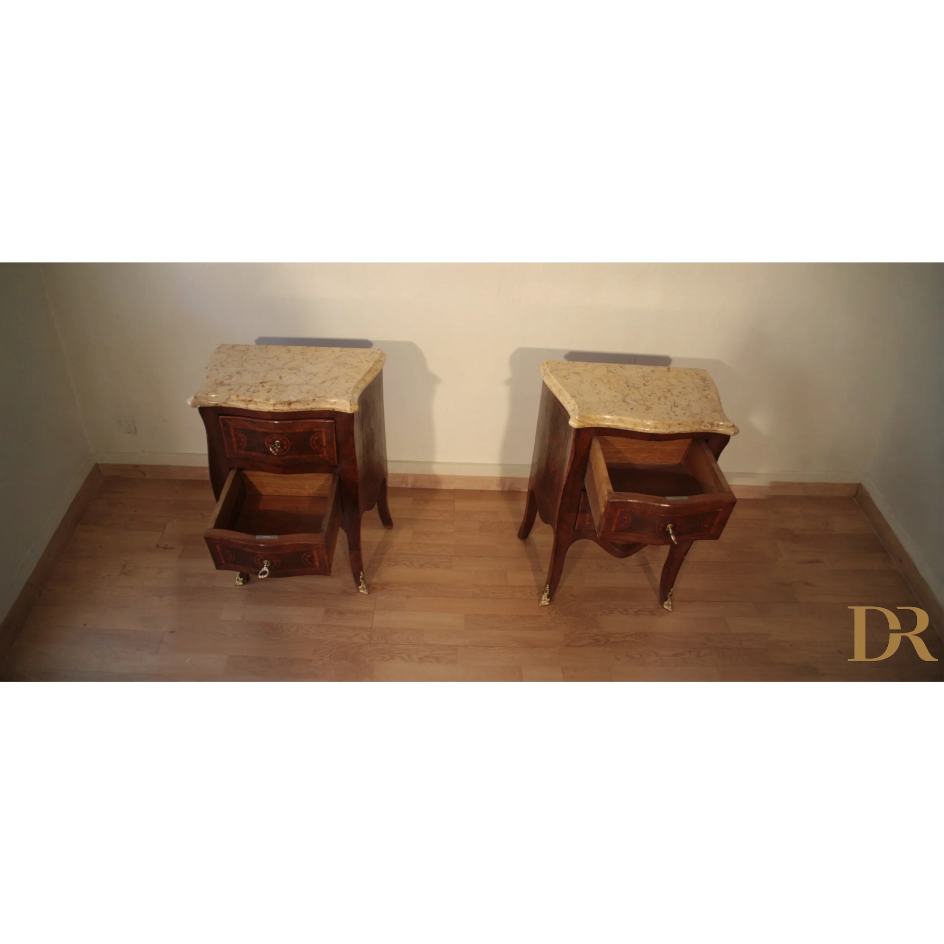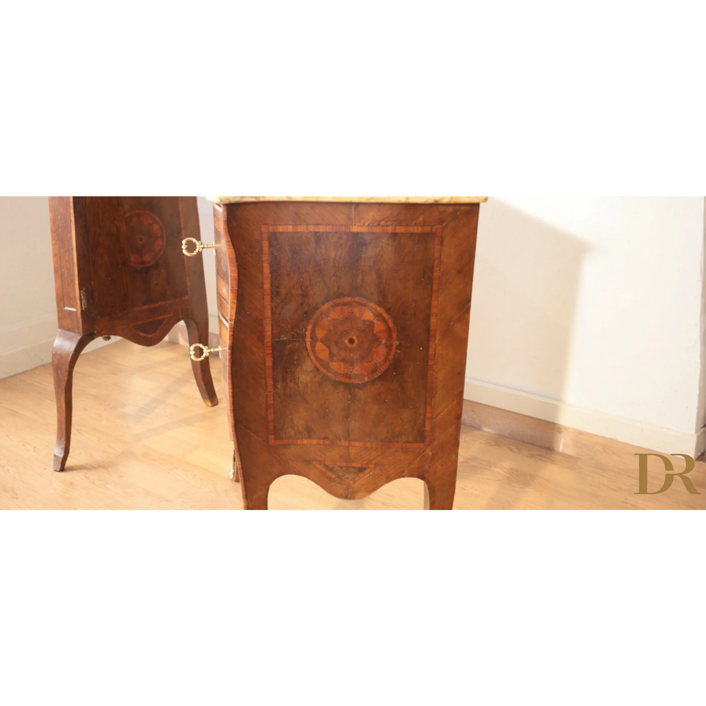 Coppia comodini in stile Luigi XV in bois de rose intarsiati - Restaurati