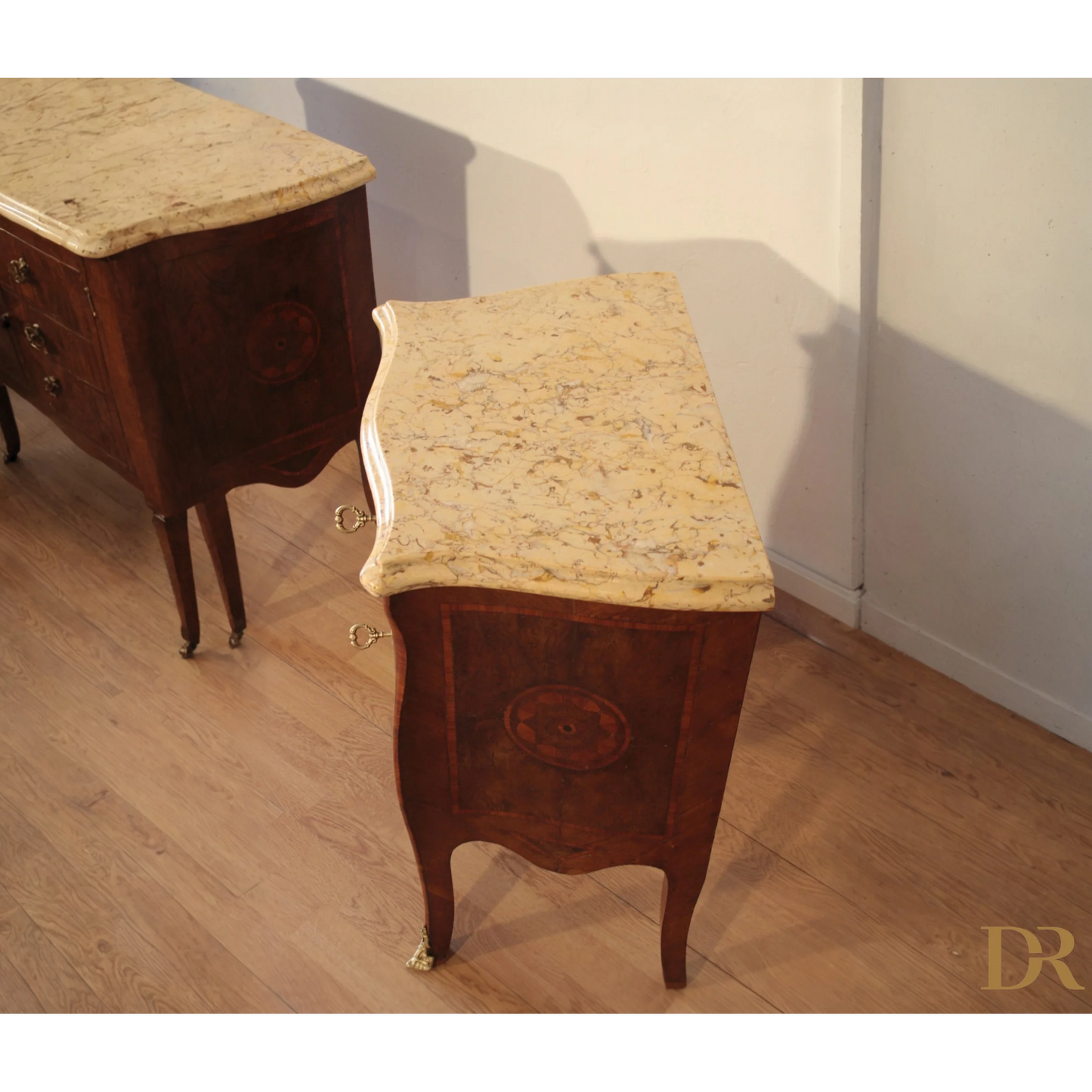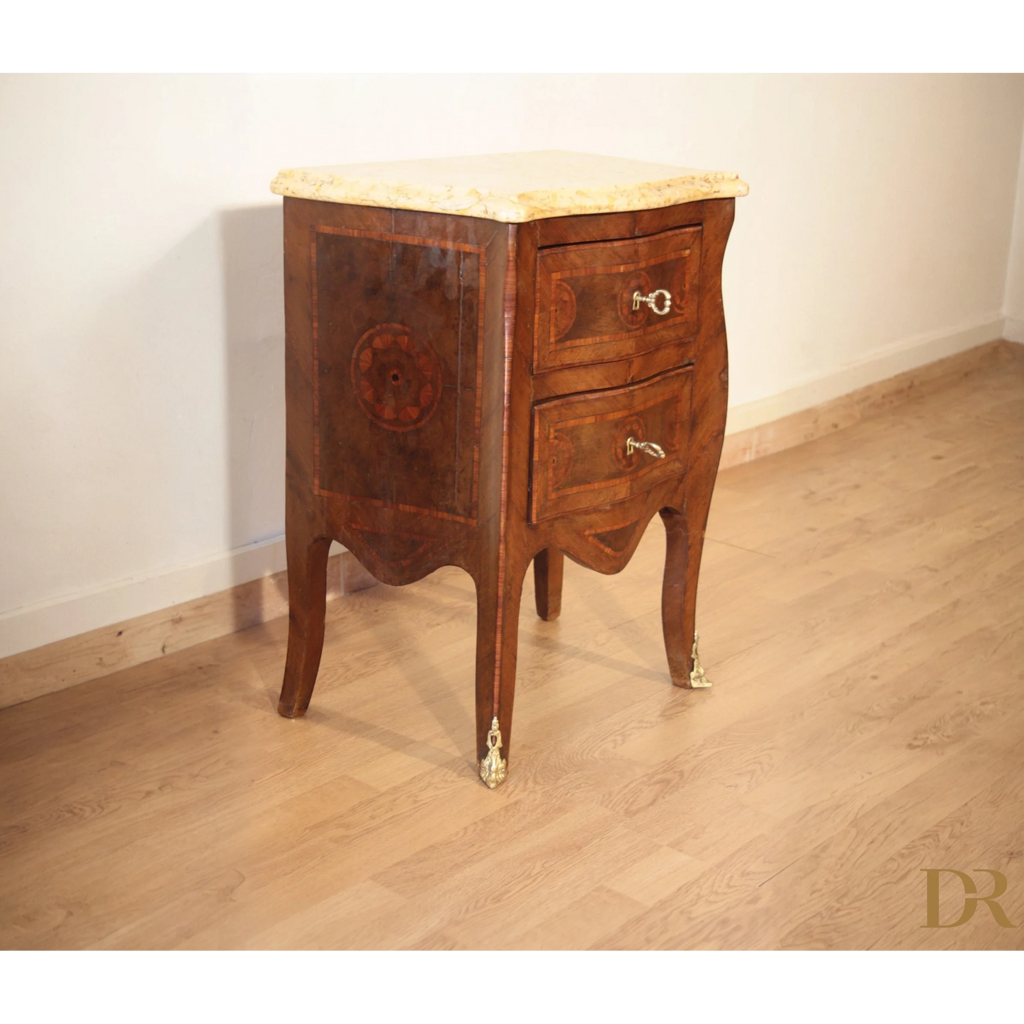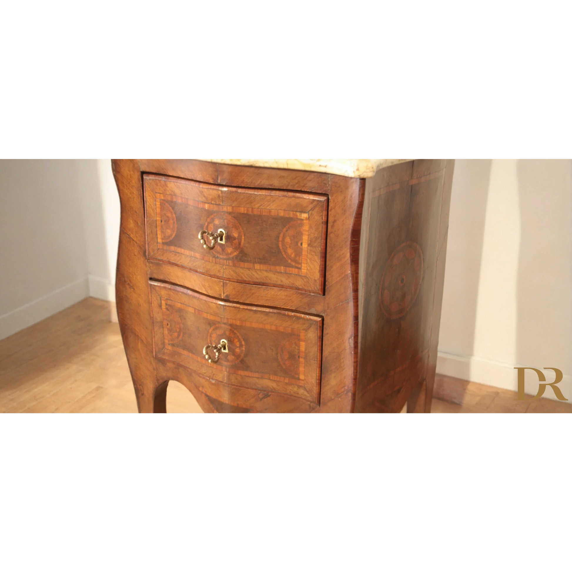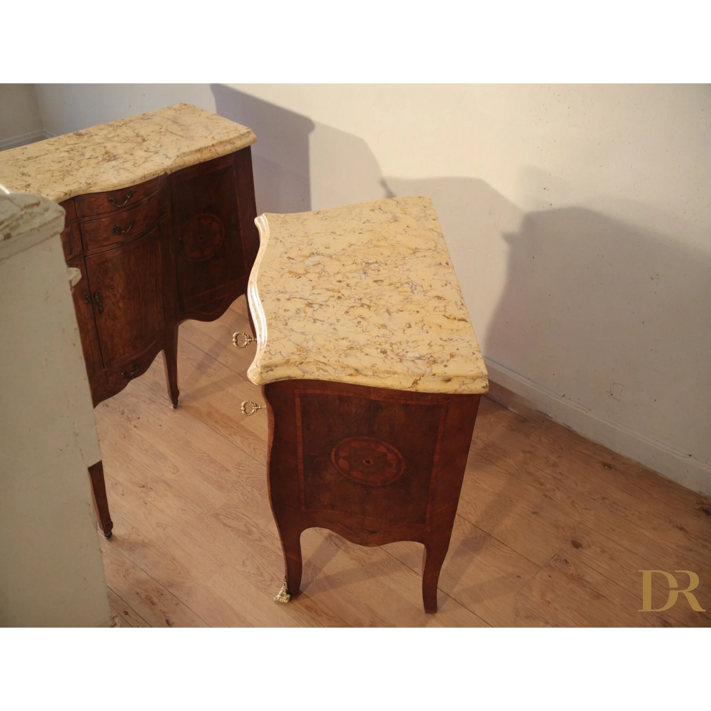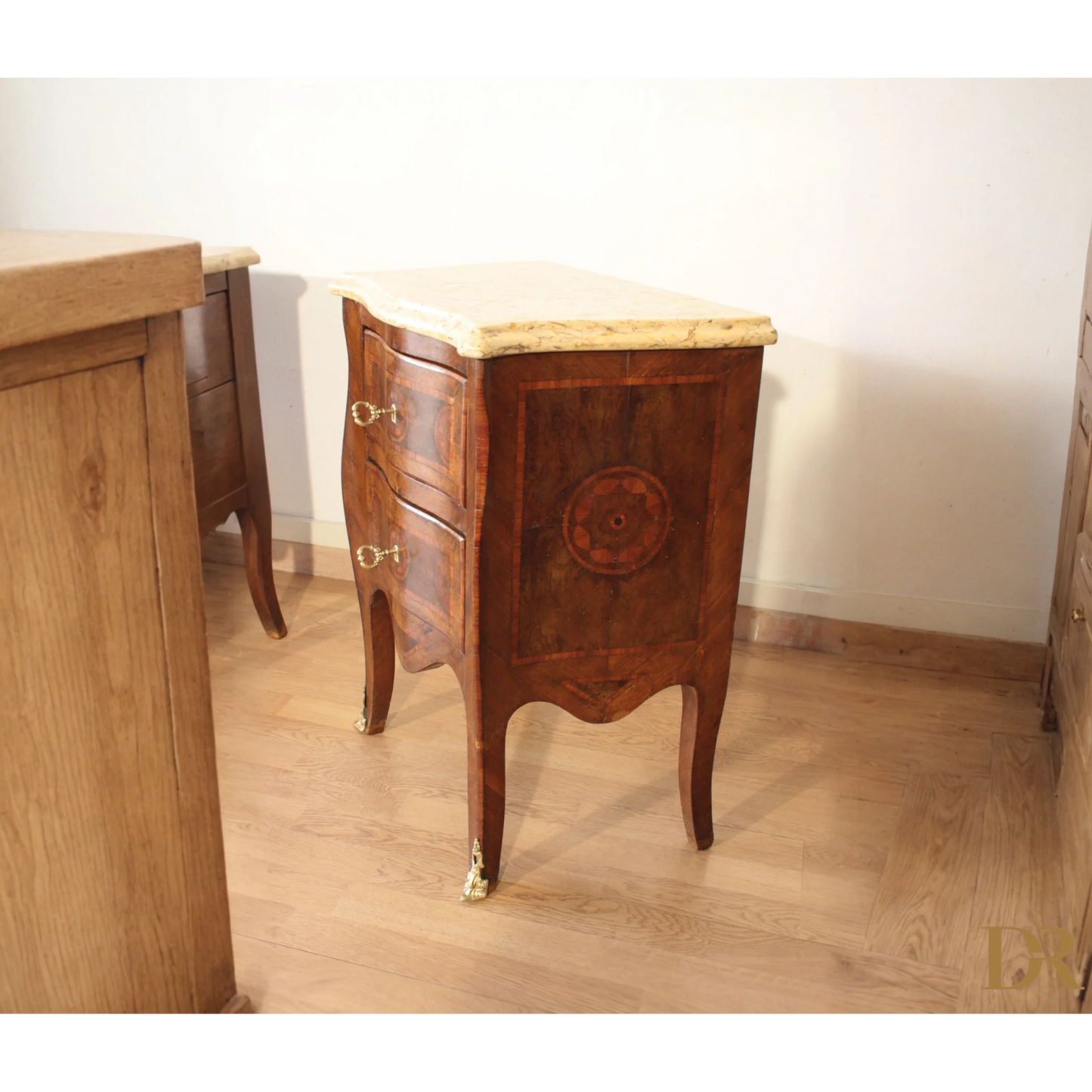 Coppia comodini in stile Luigi XV in bois de rose intarsiati - Restaurati