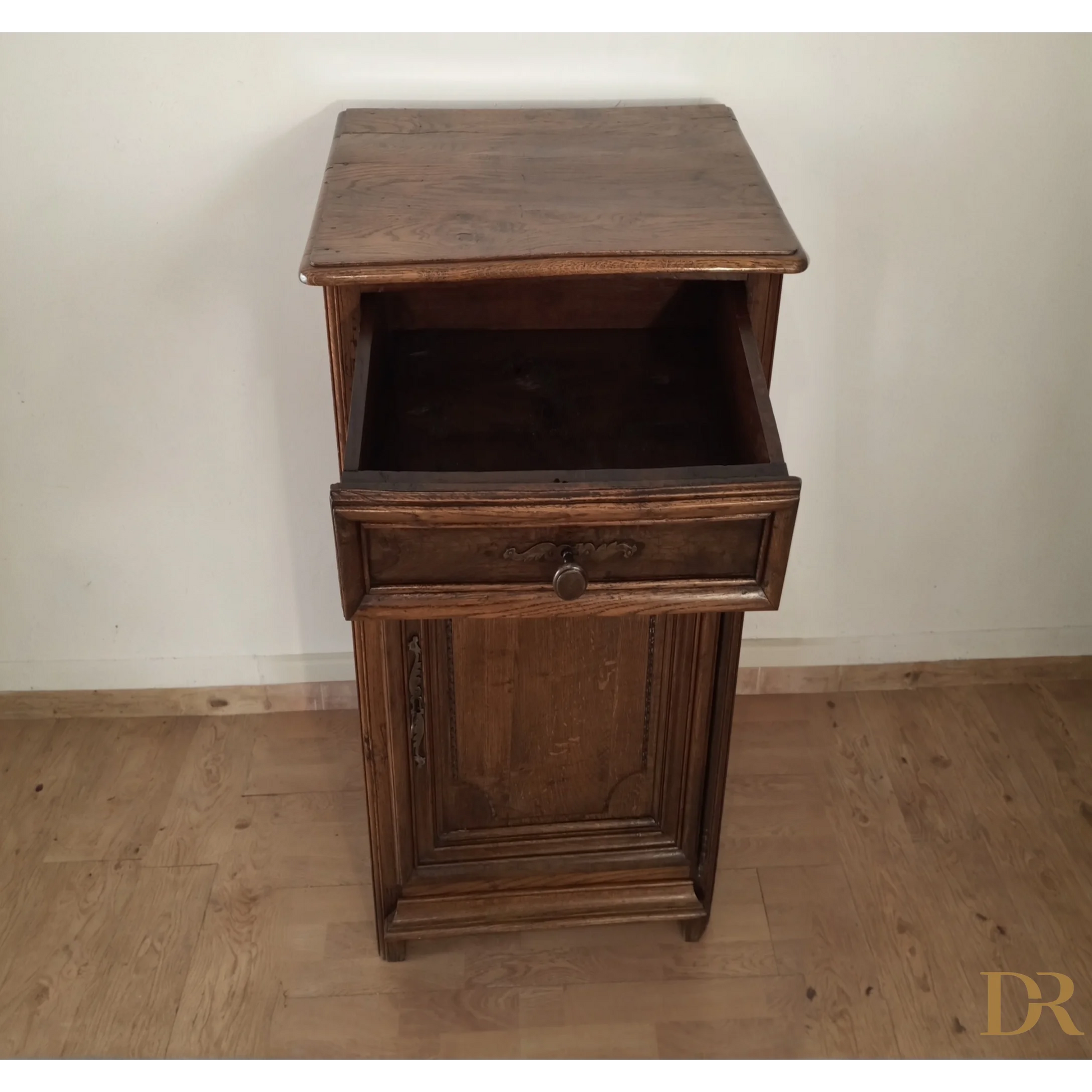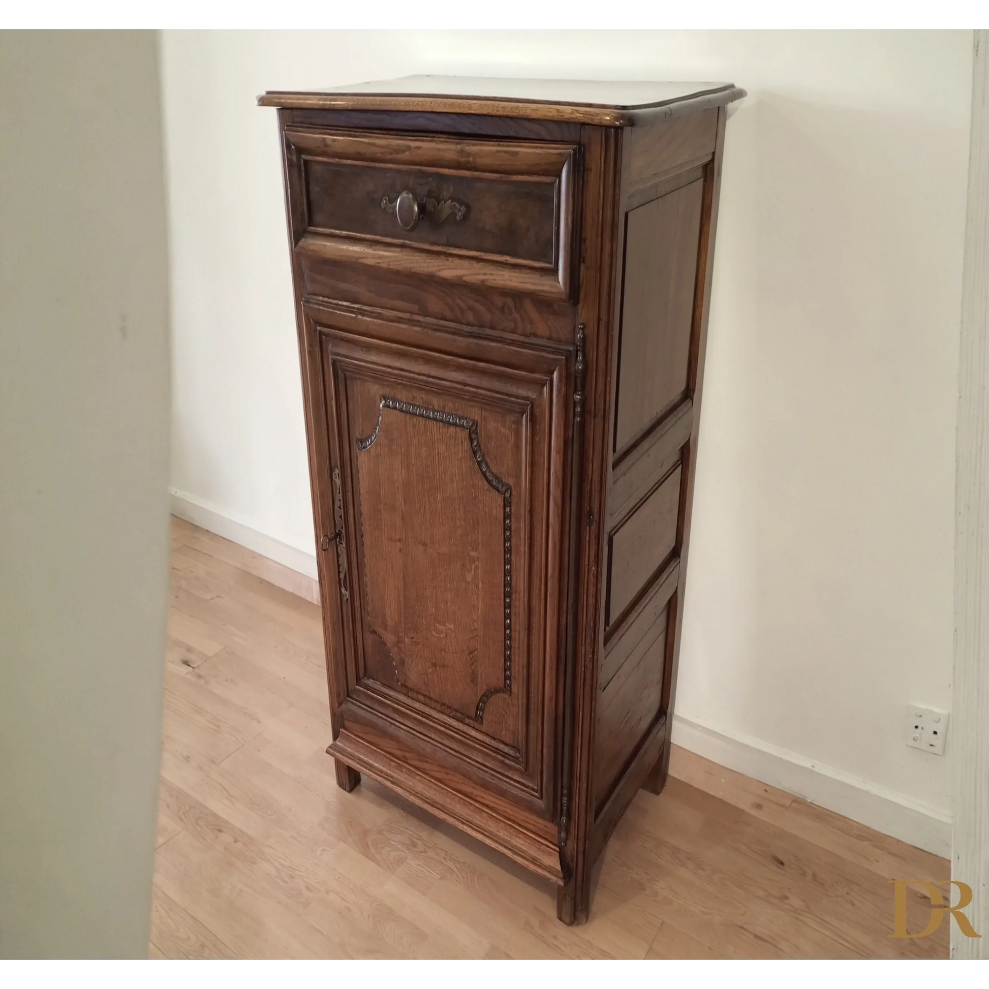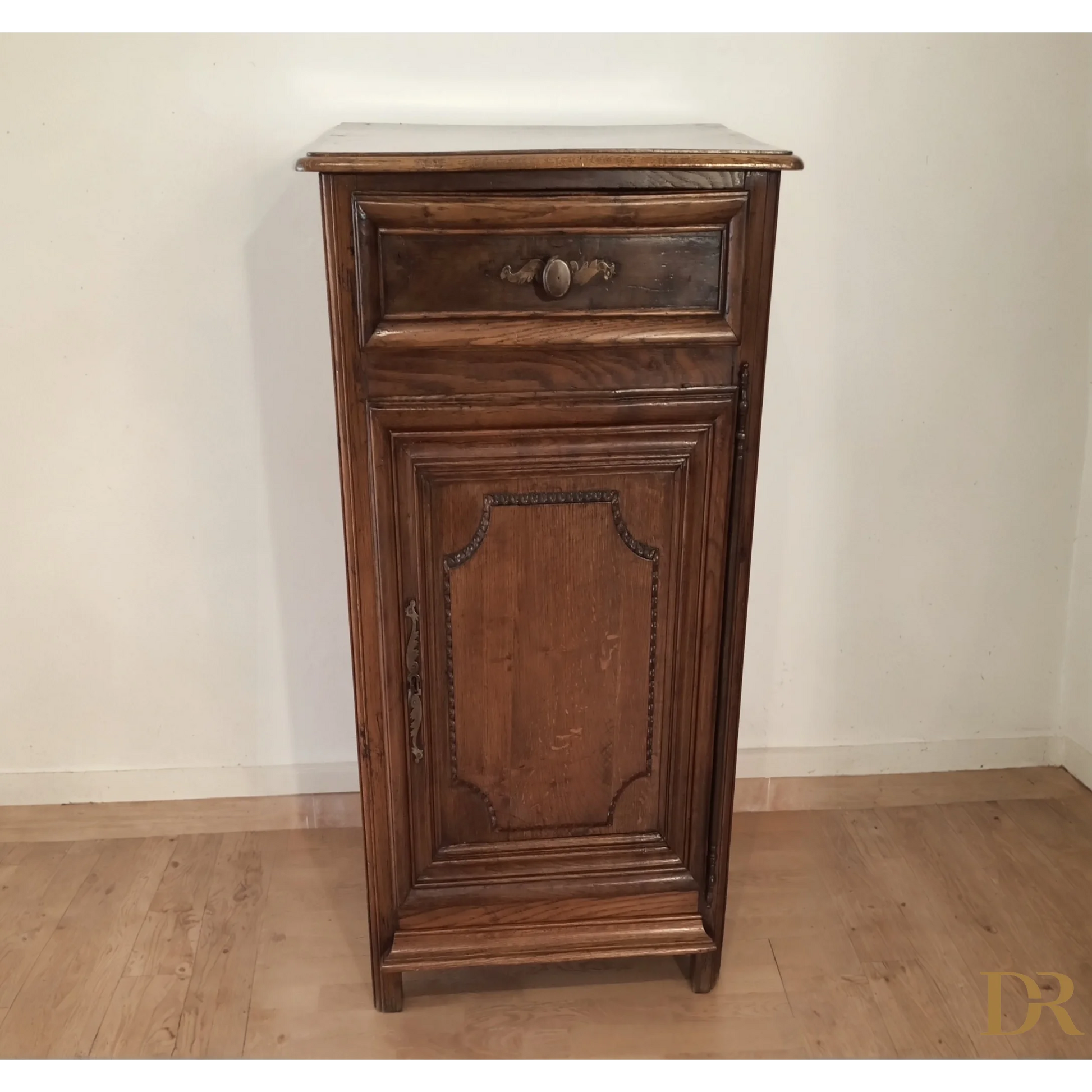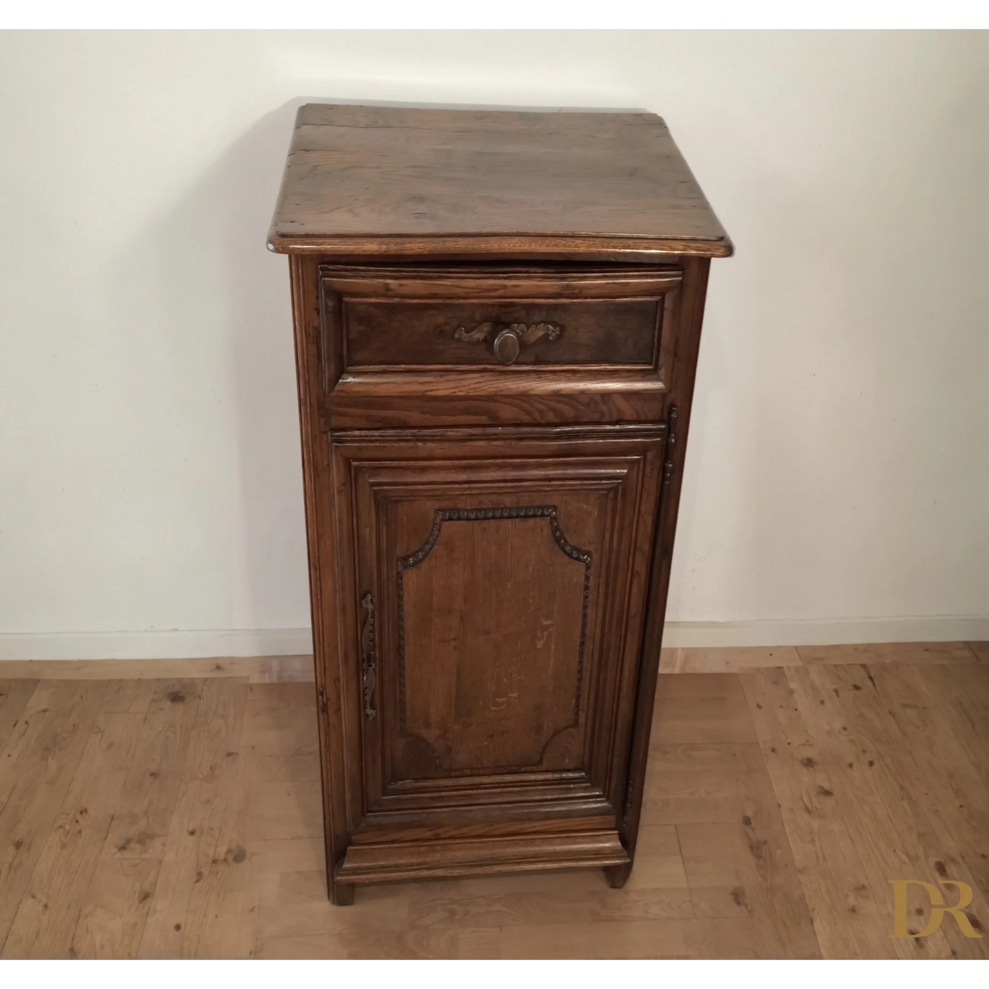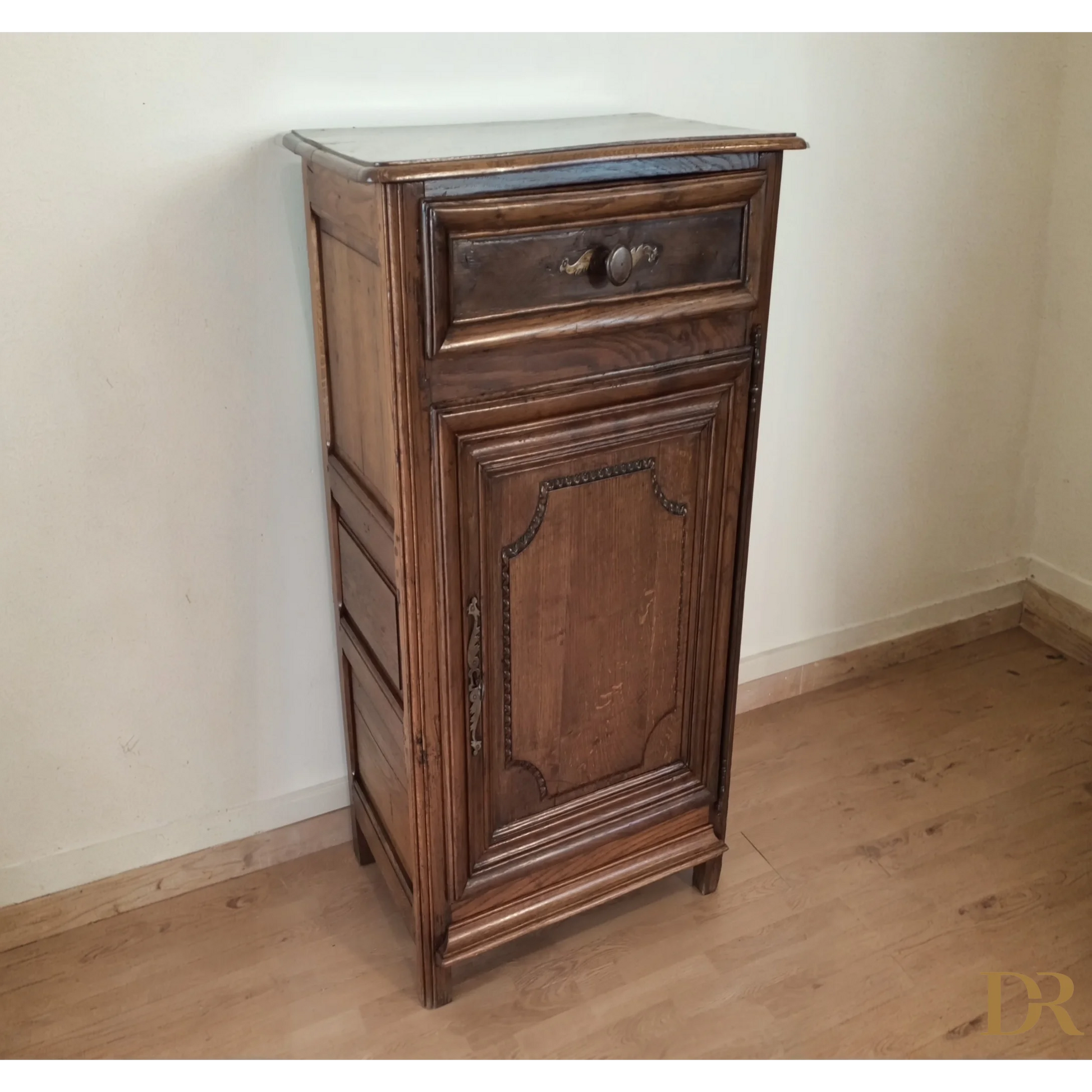 Credenza bassa settecentesca in rovere, un autentico pezzo vintage, caratterizzata da un'anta decorata da una grande cimasa che ne esalta il fascino rustico e la maestria artigianale dell'epoca. Il mobile è sormontato da un cassetto funzionale, ideale per riporre piccoli oggetti e mantenere l'ordine. Si presenta in ottime condizioni di conservazione, frutto di un attento restauro che ne ha mantenuto l'integrità e il valore storico.
