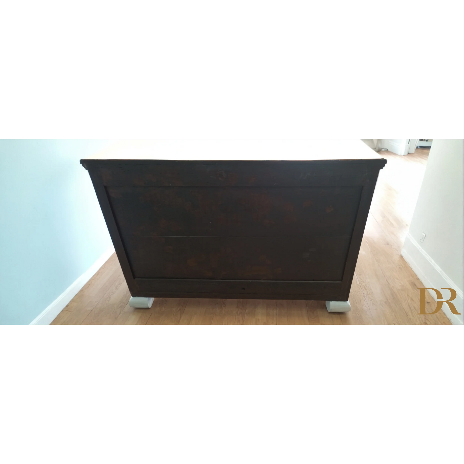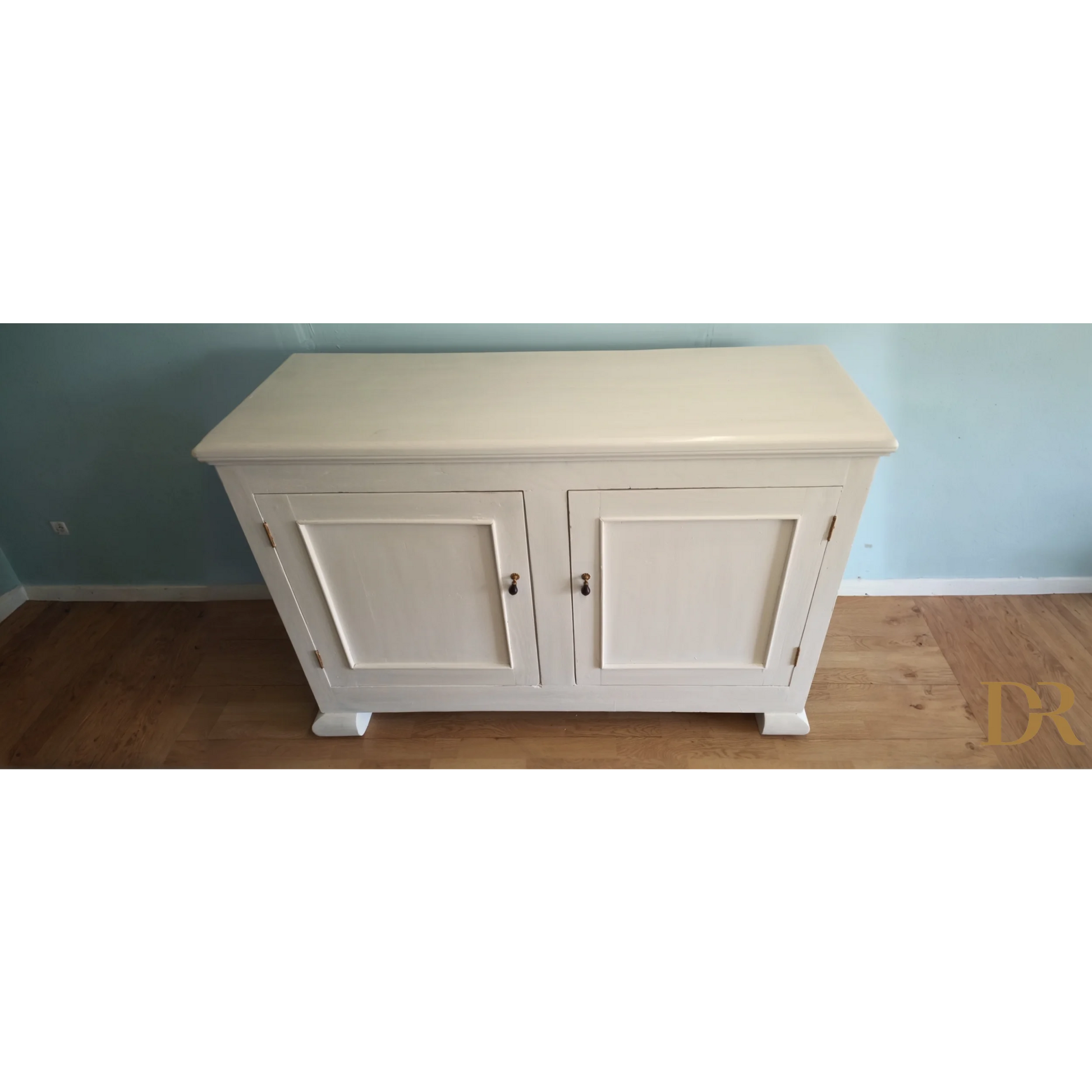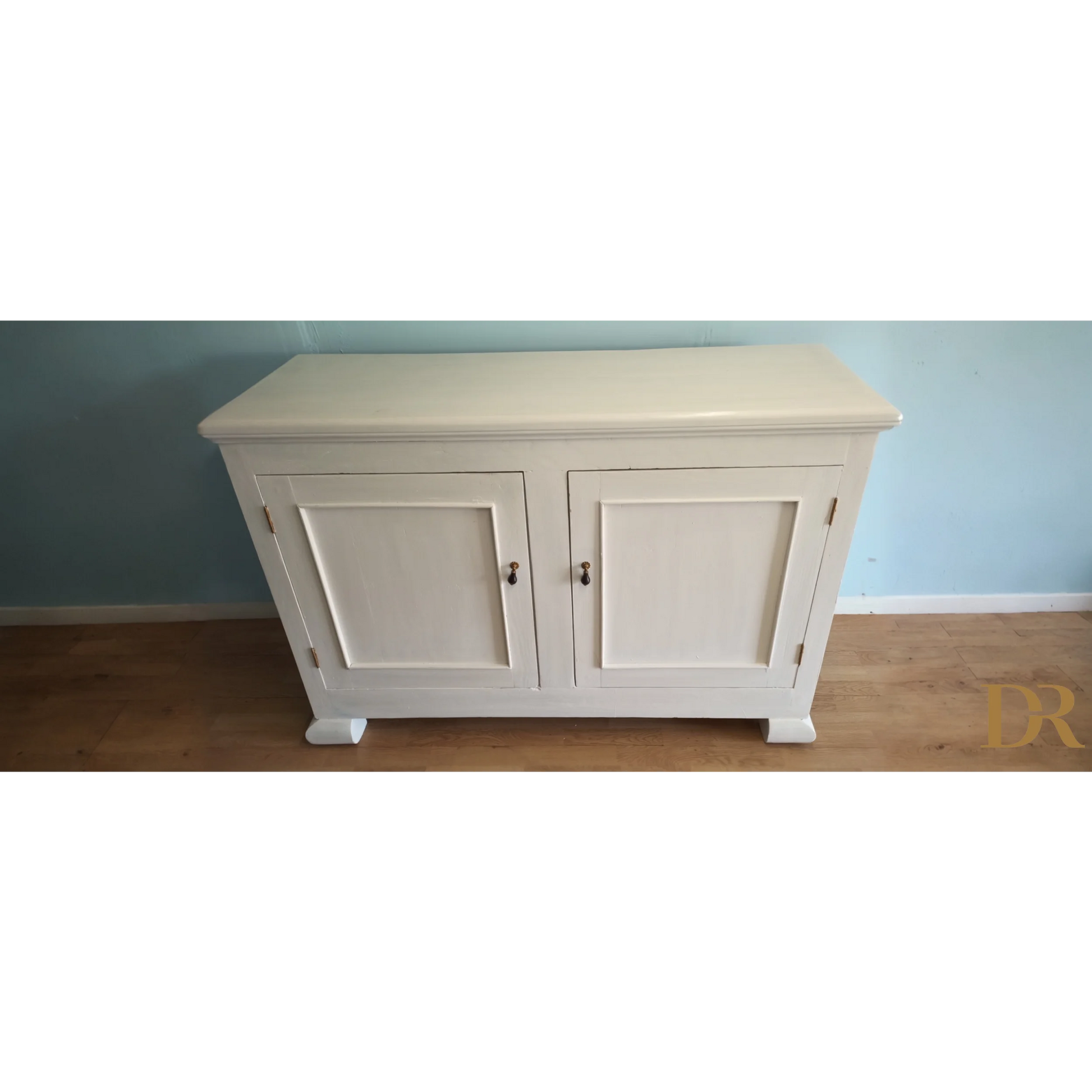 Questa credenza italiana realizzata nella prima metà del Novecento in Italia meridionale è un perfetto esempio di design provenzale shabby, portando con sé l'eleganza di un'epoca passata. La superficie è stata sapientemente dipinta e anticata in un delicato colore bianco avorio, il che le conferisce un'aura vintage e la rende adatta a vari stili d'arredo, dall'accogliente rustico al raffinato contemporaneo.