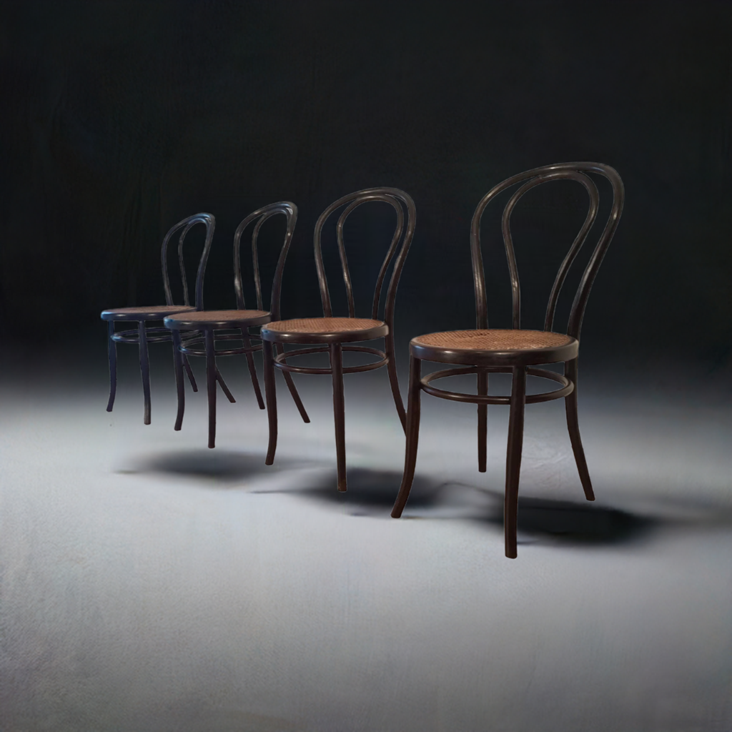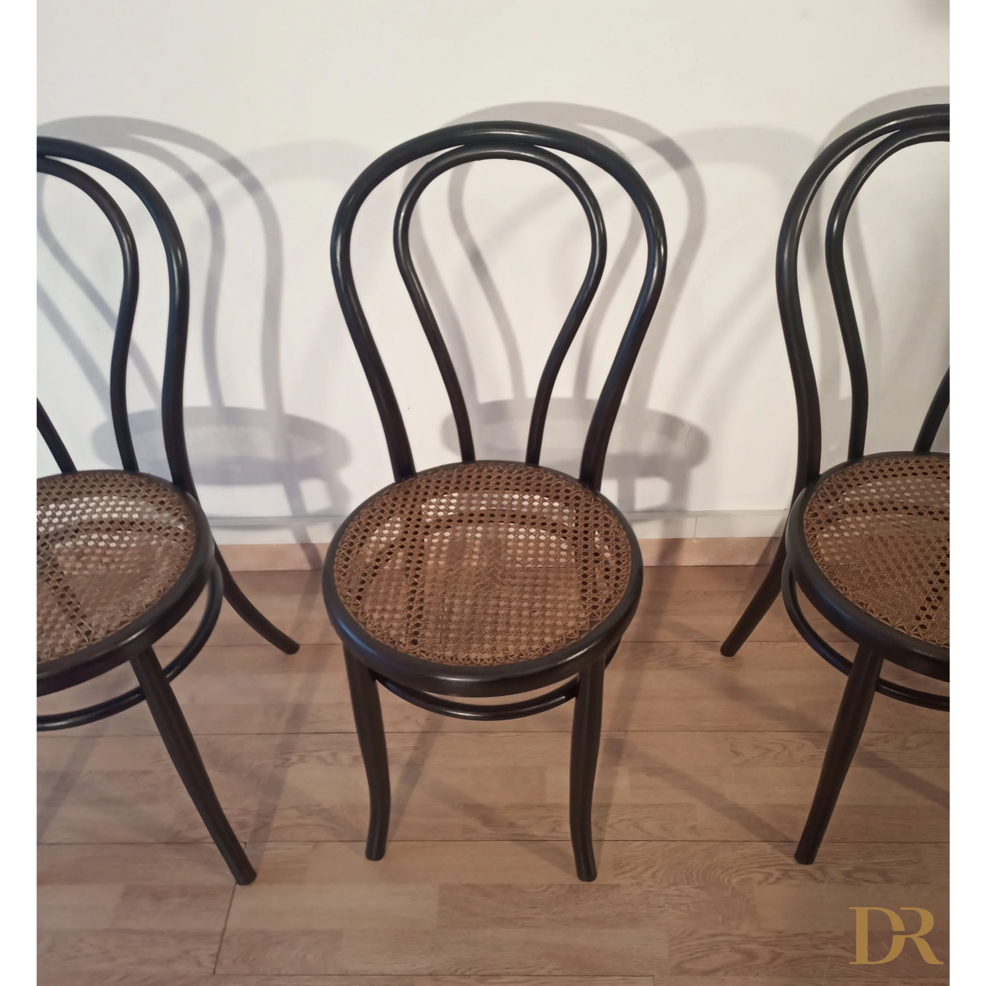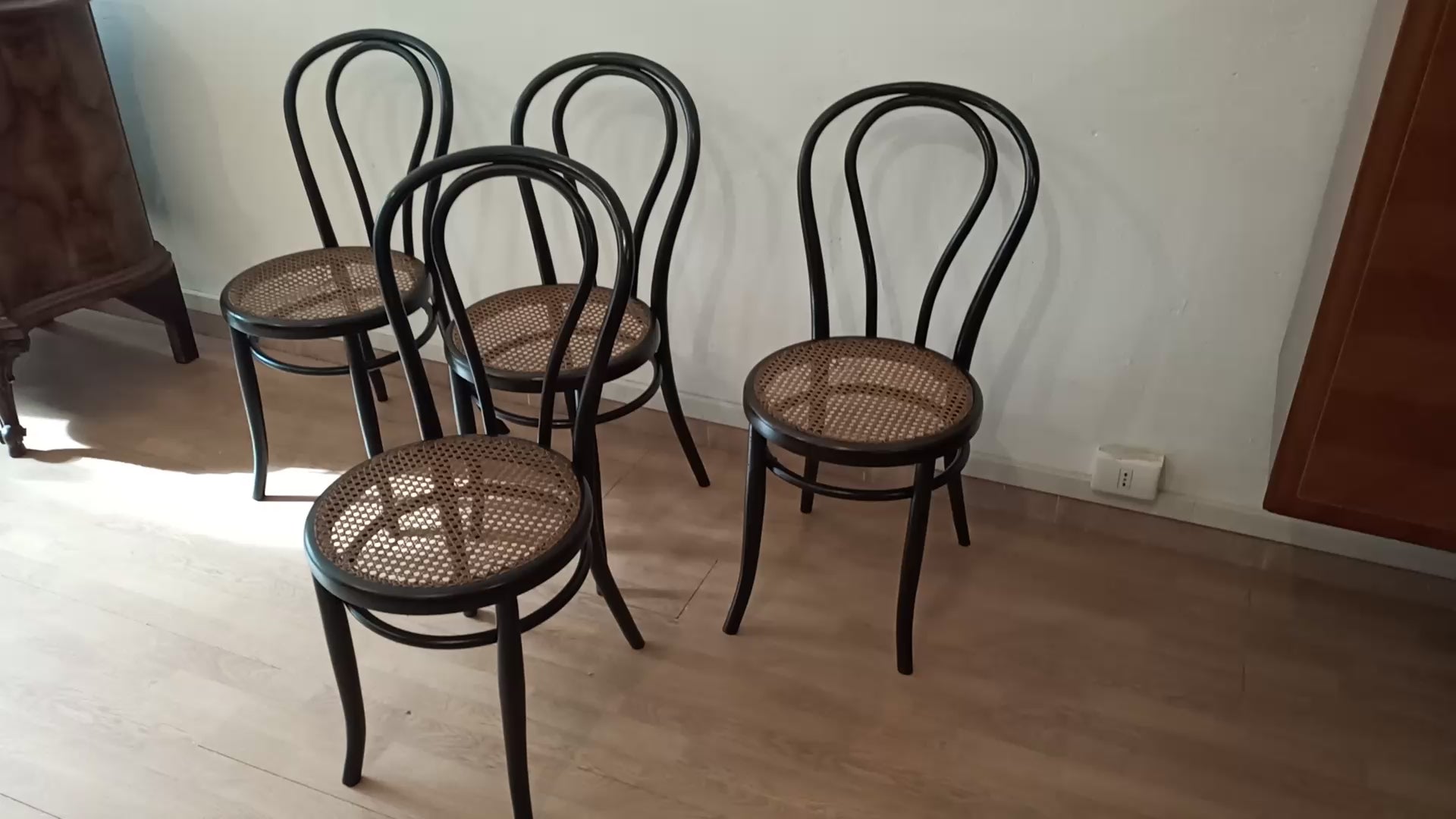 Questa sedia è stata prodotta sullo stile di Thonet, un'icona del design che ha influenzato il settore del mobile in tutto il mondo. Caratterizzata da una struttura in faggio curvato, questa sedia unisce estetica e funzionalità. La sedia è strutturalmente perfetta, offrendo un'ottima solidità e durata nel tempo. La paglia di Vienna è in ottime condizioni, mentre una delle sedie presenta una leggera usura della paglia, coerente con l'età del pezzo, evidenziando la sua autenticità e storia.