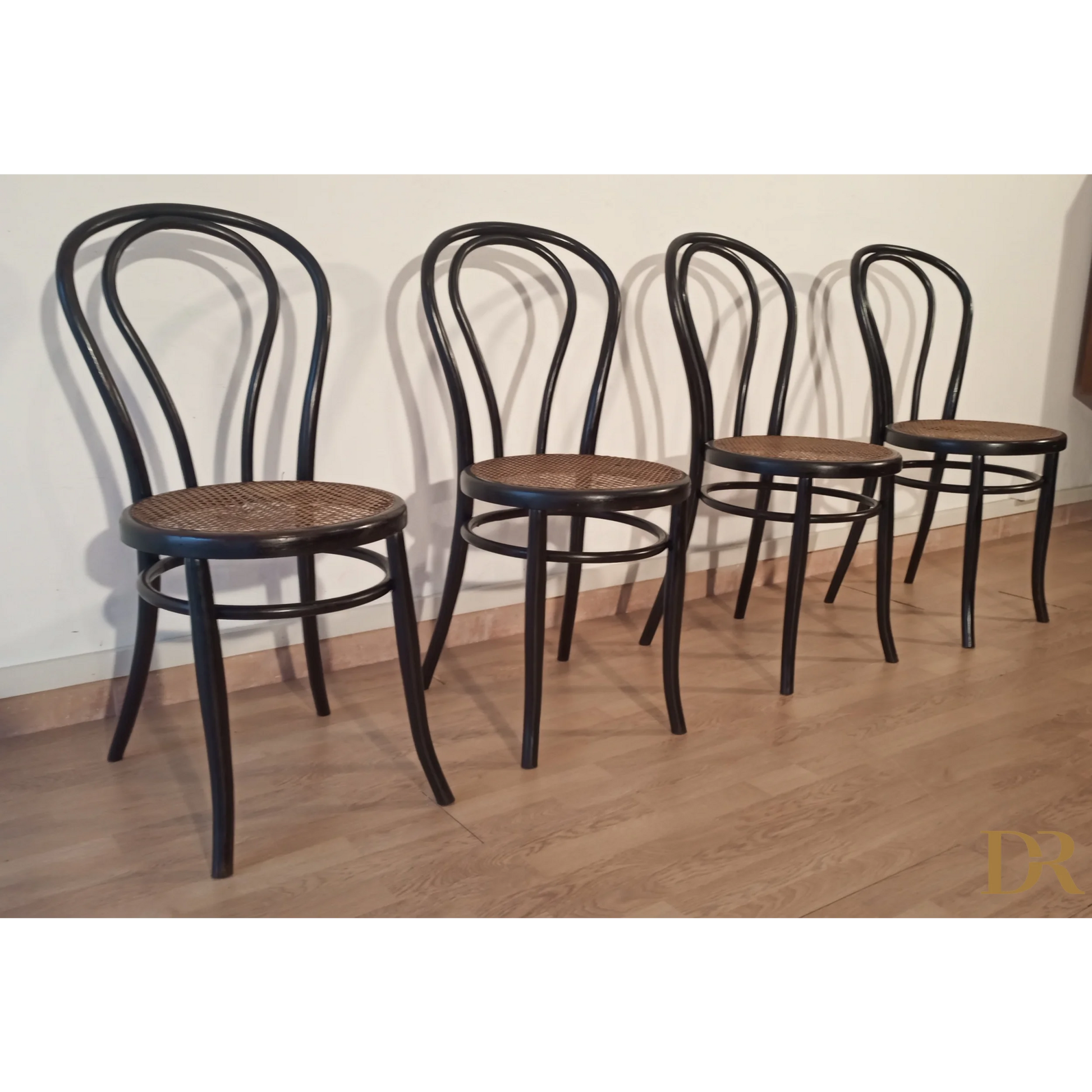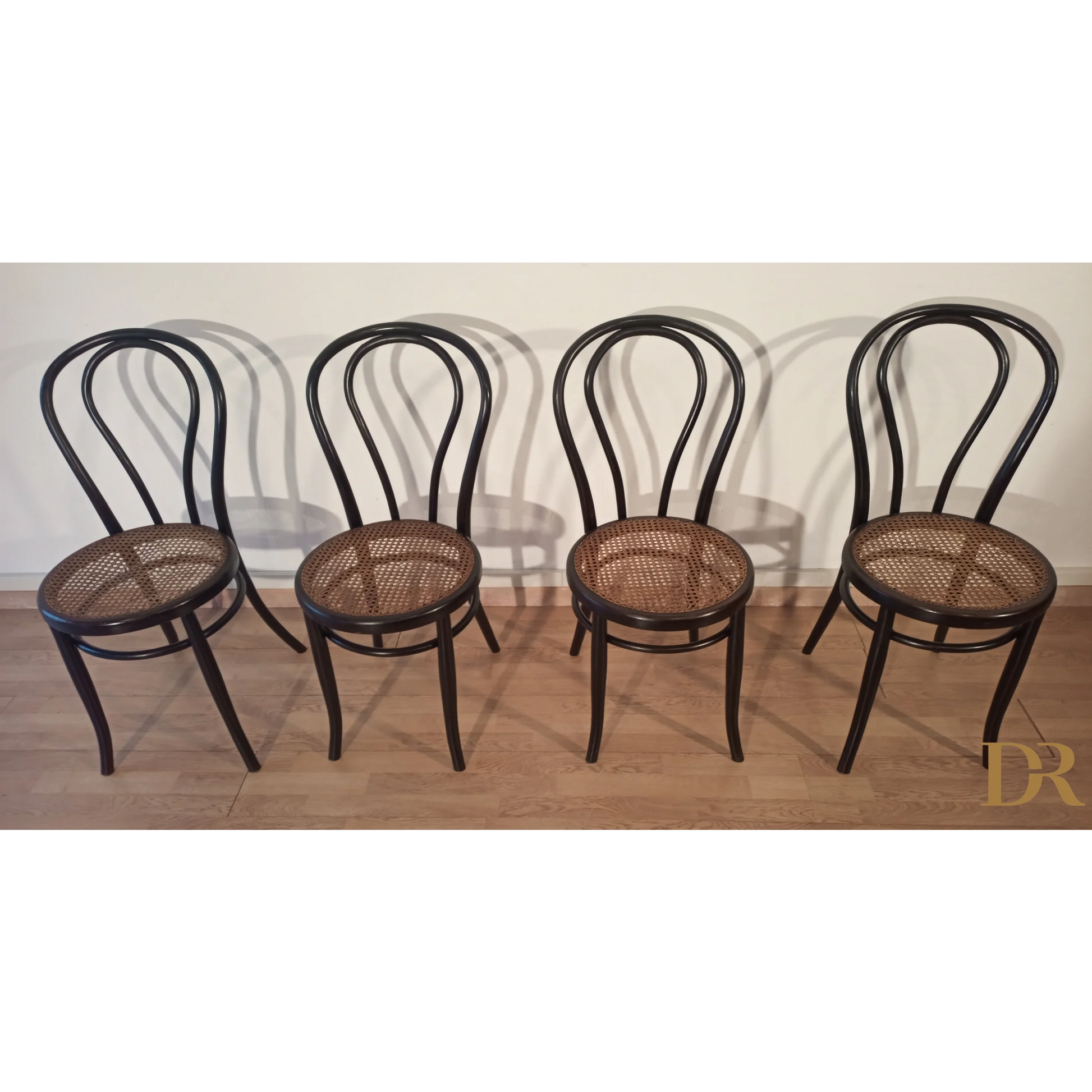 Sedie da pranzo in faggio curvato nello stile di Thonet, Italia, set di 4